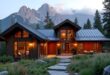 Combining metal and wood elements might seem unconventional, yet this pairing creates a compelling synergy that enhances the modern farmhouse mountain aesthetic. The warmth and texture of wood soften the sleek, industrial feel of metal, resulting in an exterior that is both elegant and robust.