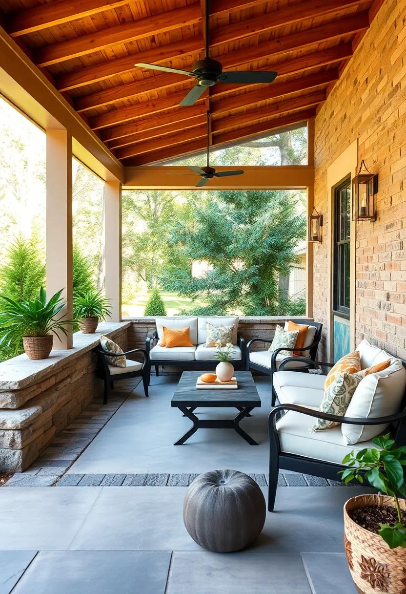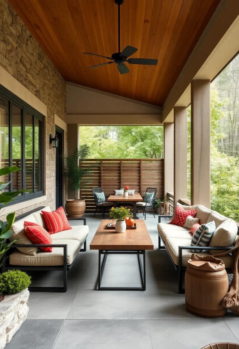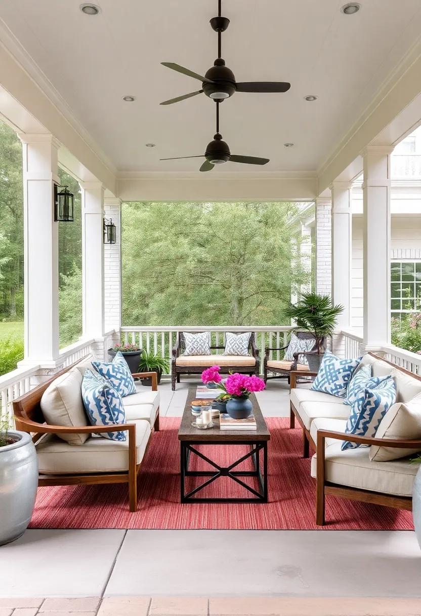 Invest in a sleek, low-profile sectional sofa that maximizes comfort without overwhelming your porch space