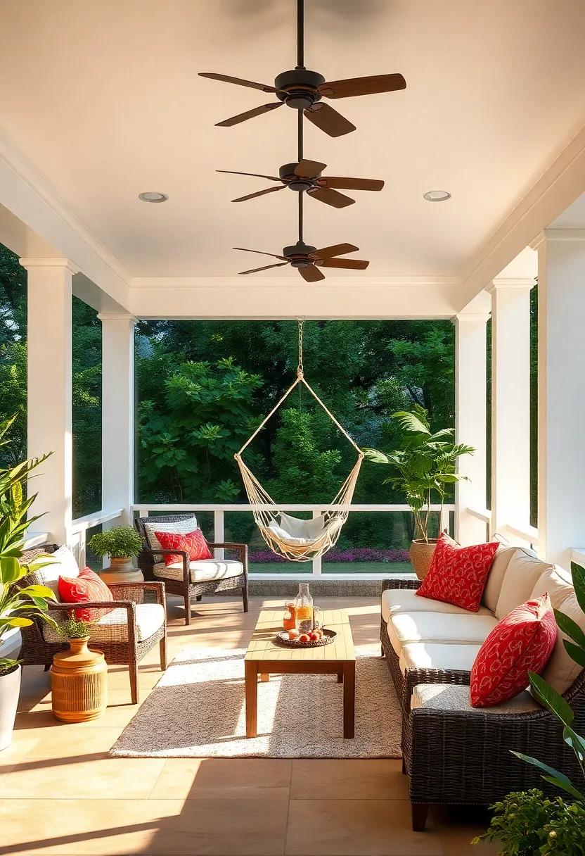Imagine a cozy nook where gentle breezes and soft sunlight merge, creating an inviting atmosphere perfect for relaxation.Installing a hammock chair from the ceiling not only maintains a laid-back vibe but also adds a touch of whimsy to your screened porch. Hammock chairs come in various styles and colors, allowing you to select one that harmonizes with your overall decor.Consider options made from durable, weather-resistant materials to ensure longevity and comfort.