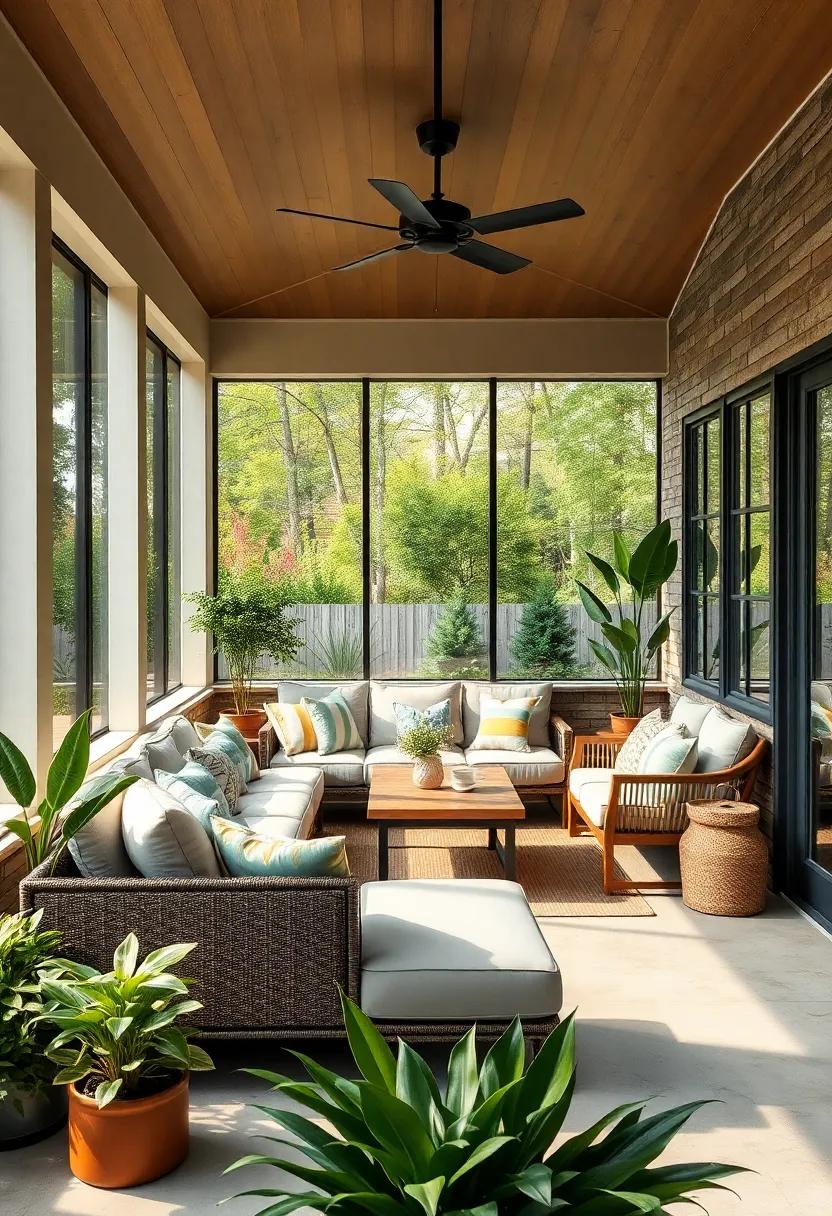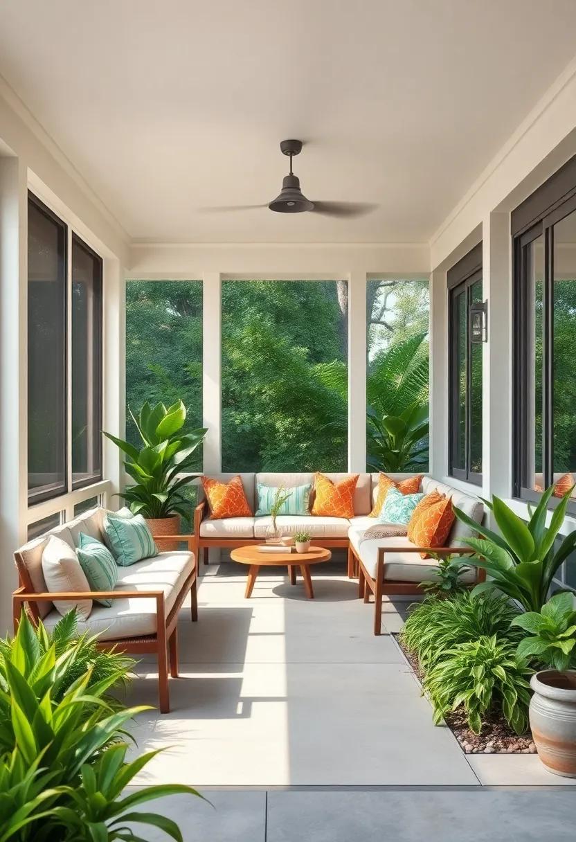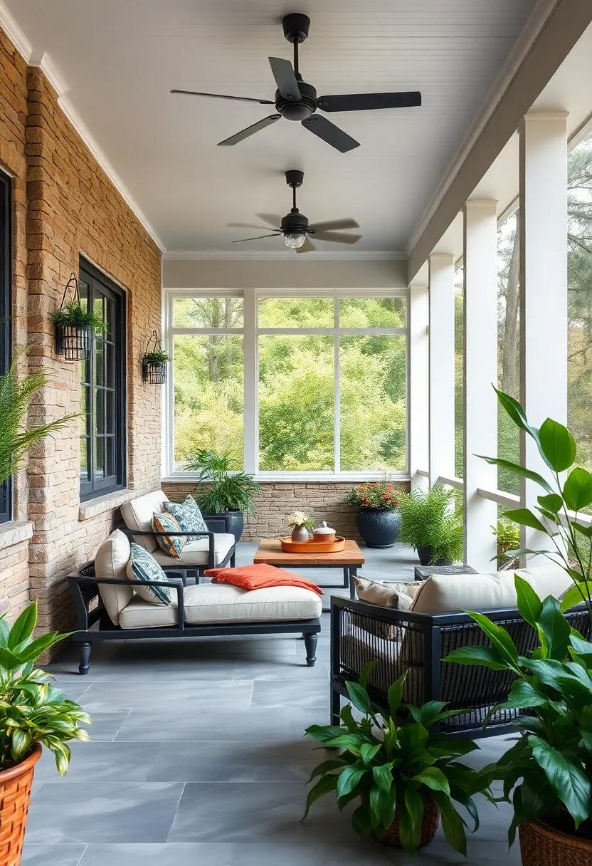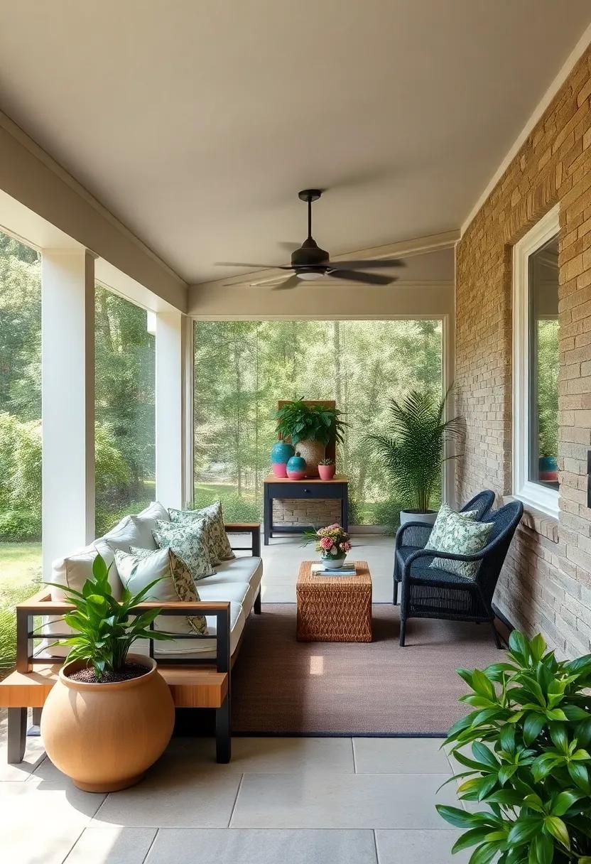 Transform your screened porch into a stylish retreat by incorporating a daybed that doubles as both seating and a cozy lounging area. Choose a design that features sleek lines and contemporary accents, ensuring it complements your overall aesthetic. To enhance comfort, drape the daybed with soft, breathable fabrics like cotton or linen, which not only offer a chic look but also promote airflow during warm days. Consider layering with an array of decorative throw pillows and a plush, lightweight blanket to create an inviting spot for reading or napping.