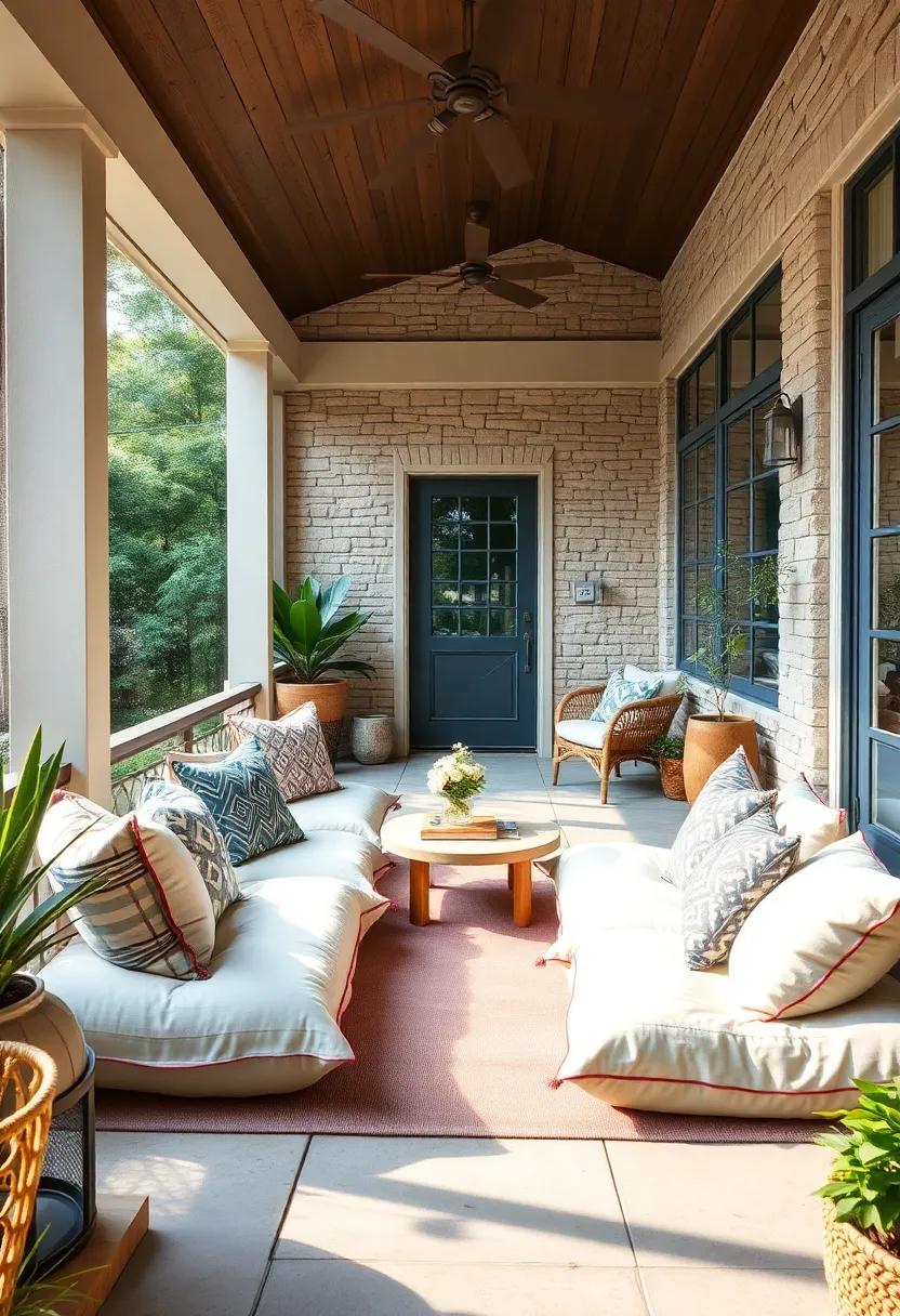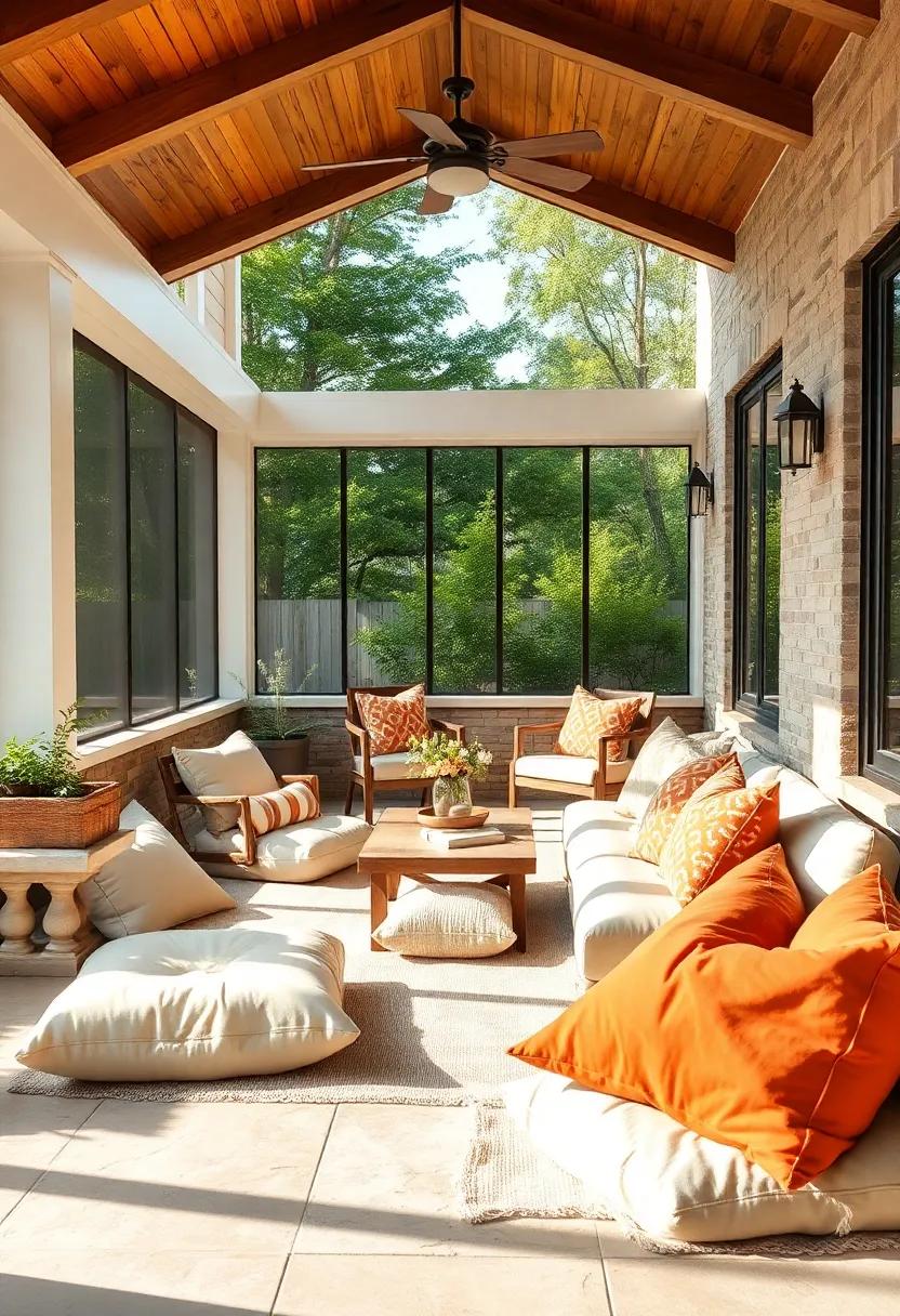 Discover the charm of oversized floor cushions, as they invite you to create your own personal haven on your screened porch. Thes plush companions not only provide comfort but also add a touch of bohemian flair to your outdoor space. Surrounding yourself with a colorful array of patterned cushions allows for a cozy atmosphere, perfect for lounging with a book or sipping on your favorite warm drink.Whether you choose vibrant fabrics or muted tones, oversized floor cushions can transform your porch into a sanctuary where relaxation reigns supreme.