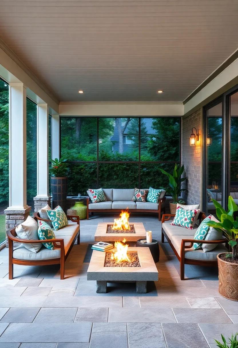 Imagine gathering with friends and family around a cozy fire pit, the flickering flames providing both warmth and an inviting ambiance. Consider low seating options such as poufs, floor cushions, or sleek benches that encourage relaxation and conversation. These comfortable additions not only promote a casual atmosphere but also align perfectly with the natural setting of a screened porch. incorporating materials like weather-resistant fabrics and soft textures will enhance the experience, making it easy for your guests to sink in and enjoy the evening. You can also enhance the aesthetics with string lights overhead, creating a soft glow that complements the fire’s warmth.