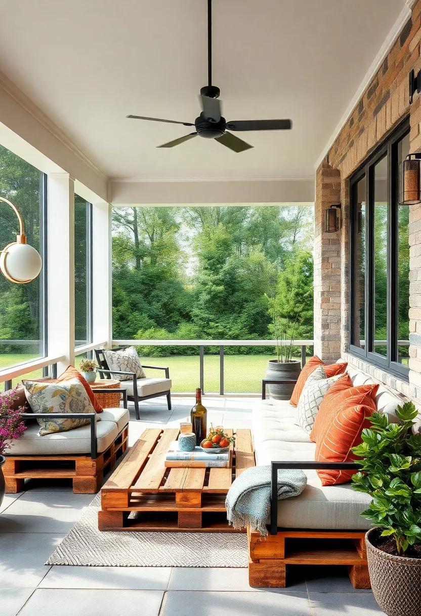 transforming your screened porch into a cozy retreat can be as simple as repurposing wooden pallets.By stacking a few pallets to create a sturdy base, you’ll instantly introduce a rustic charm to your space. Top these pallets with thick, vibrant cushions that not only offer comfort but also add a splash of color to your decor.Consider using outdoor fabric for the cushions to ensure durability against the elements. Mix and match different textures and patterns to infuse personality into your seating area.