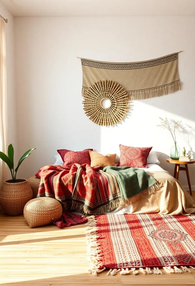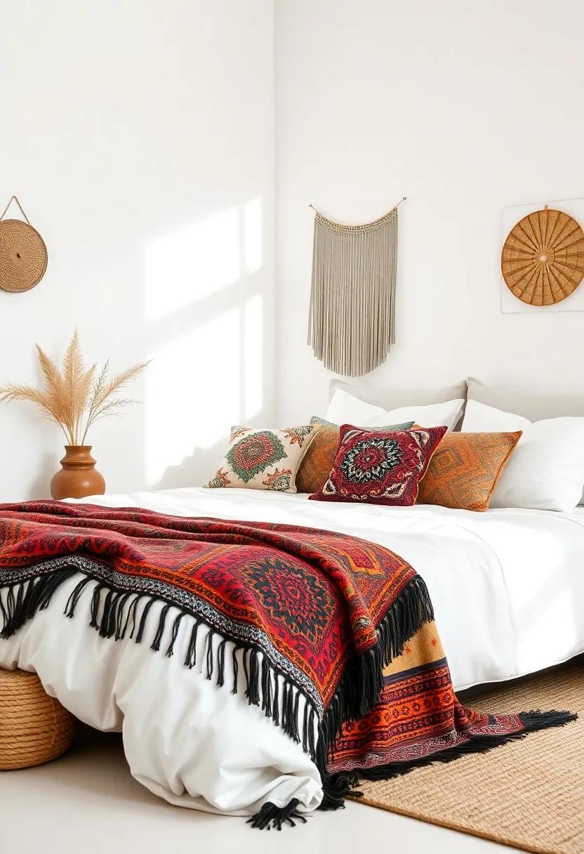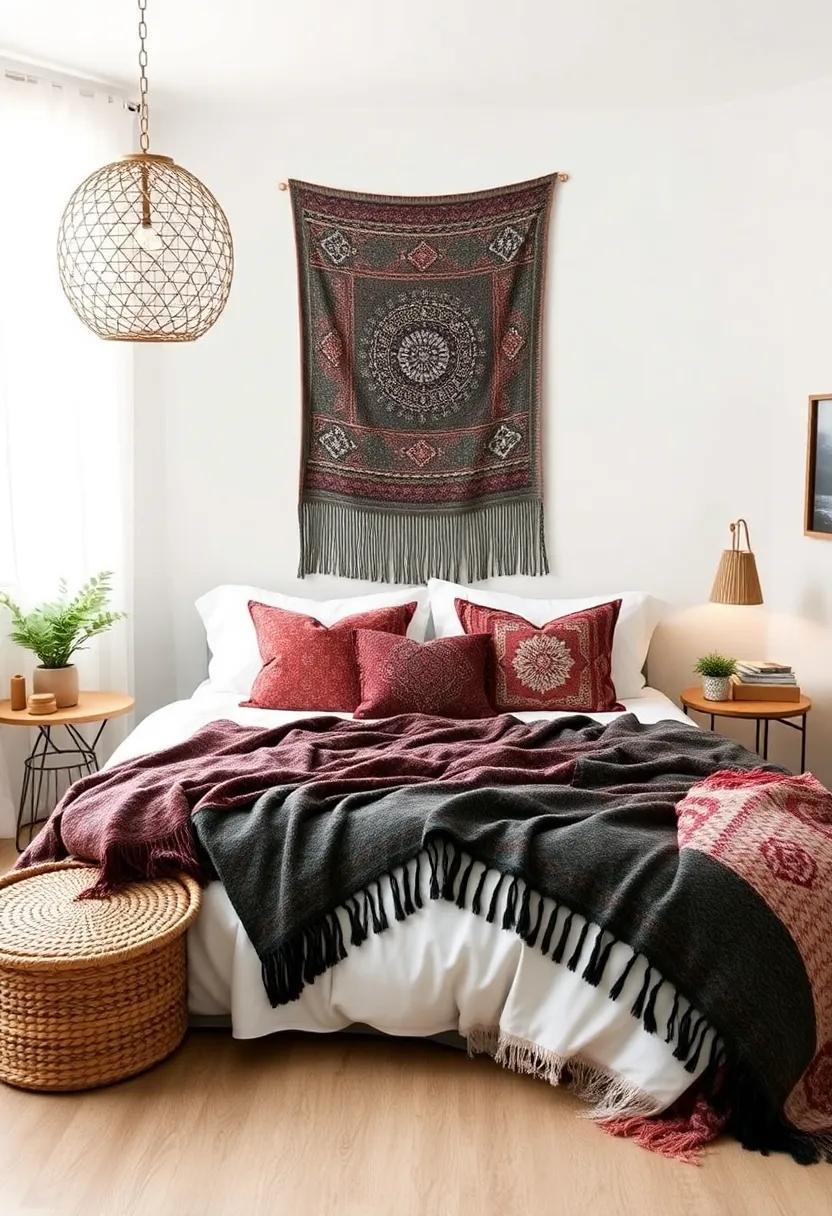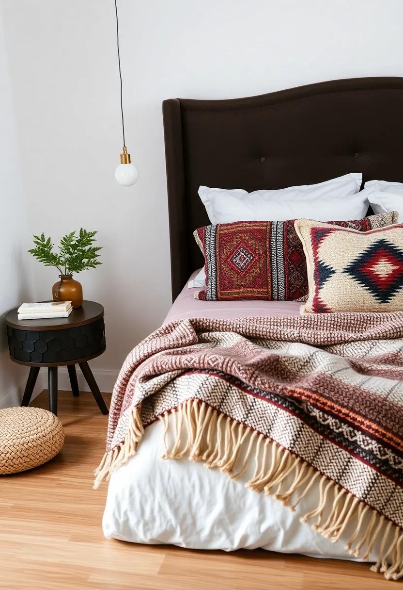 Transform your bedding into a stunning focal point by incorporating an array of ethnic throw blankets. The art of layering not only adds depth to your overall aesthetic but also invites a tactile experience that is both warm and welcoming. Mix and match diffrent patterns, be it geometric prints, tribal motifs, or vibrant colors, to create a cohesive canvas. Pair a thicker,knitted throw with a lightweight,patterned blanket draped gracefully across the foot of your bed. This technique will create a rich tapestry of visual interest, drawing the eye and enhancing the cozy appeal of your bedroom sanctuary.