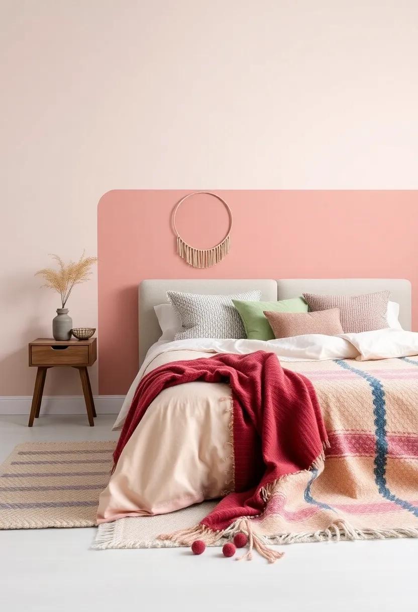 Soft Color Blocking: Incorporate blocks of soft colors with ethnic throws to create a gentle yet playful backdrop for your bohemian bedroom