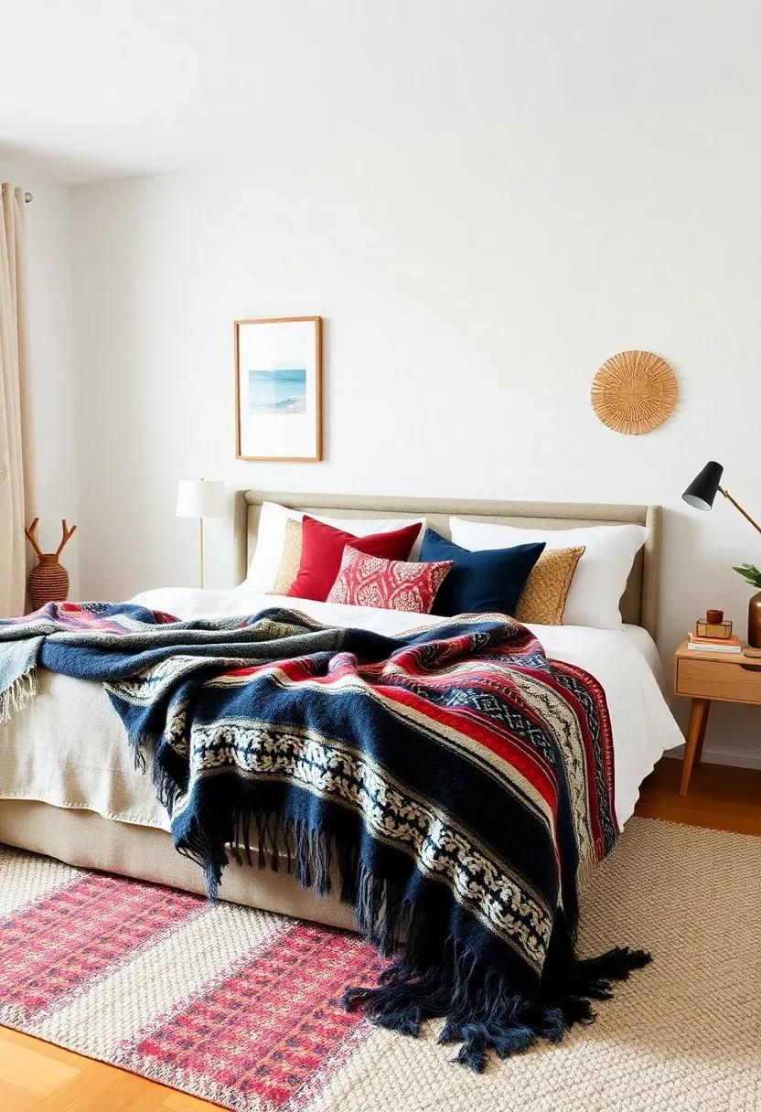 Create a cozy, world-inspired atmosphere in your bedroom by incorporating ethnic throw blankets that tell the stories of your travels. Each blanket can serve as a conversation starter, evoking memories of adventures in far-off lands. Consider layering a vibrant kilim blanket from Turkey over your bedspread, or draping a soft, handwoven Mexican blanket across a chair for an effortless touch of bohemian elegance. these textiles not only provide warmth but also introduce rich colors and patterns that can transform your space into a sanctuary inspired by culture and exploration.