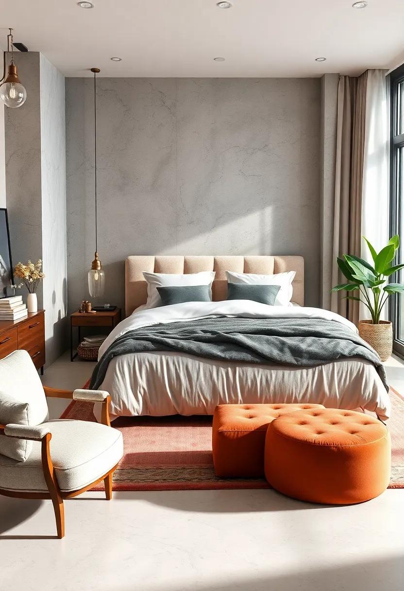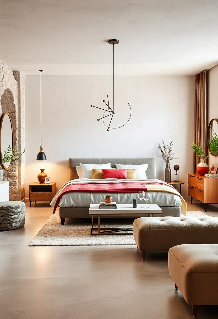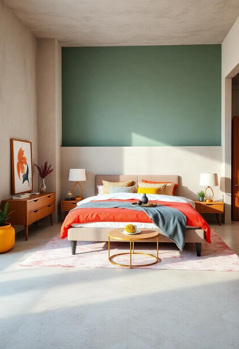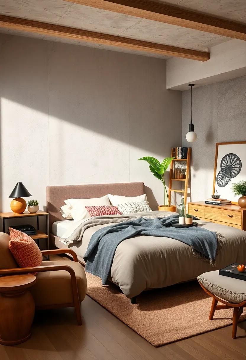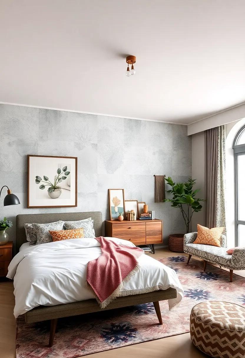 to enhance the retro vibes, incorporate complementary pieces that reflect the charm of the era. Dressers and wardrobes adorned in walnut or teak finishes add a lush backdrop to the space, while uniquely shaped mirrors can serve as both functional and decorative elements. Accentuate the room with mid-century inspired lighting—like pendant lamps with playful shapes—to illuminate the space artistically.this curated blend of vintage-meets-modern not only makes a statement but also invites a sense of calm, ensuring your bedroom retreat is as stylish as it is comfortable.