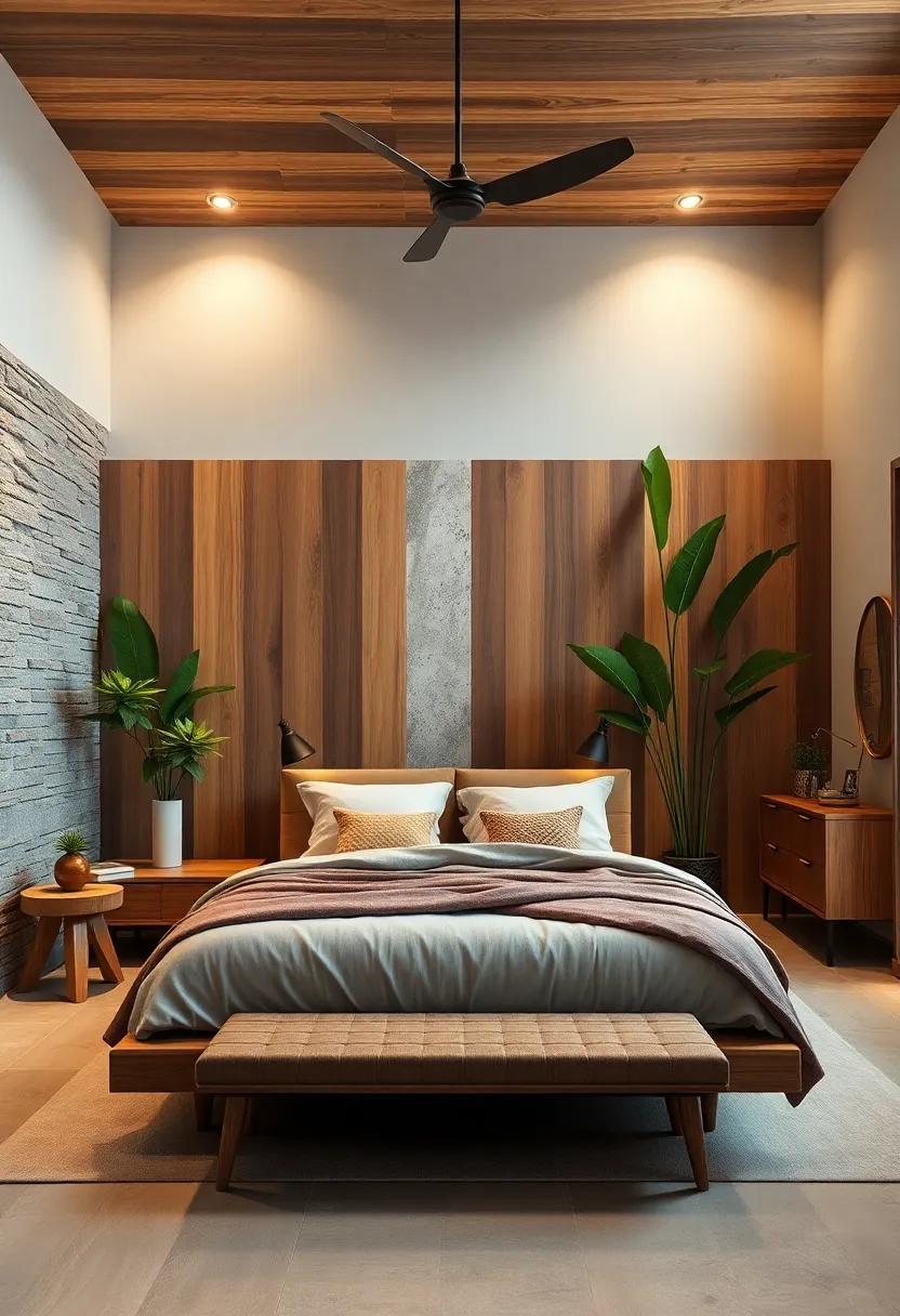 Transform your bedroom into a retreat that wraps you in comfort and calmness with the warmth of wood finishes and the vitality of greenery. Opt for furniture crafted from rich, natural woods such as oak, walnut, or teak, which not only offer a tactile connection to nature but also bring depth and character to your space.coupled with soft, earthy tones on walls and bedding, these finishes provide a harmonious backdrop that encourages relaxation.To further enhance the tactile experience, consider using textured fabrics like linen or cotton that imitate the organic feel of nature, creating a cocoon-like atmosphere that feels both inviting and rejuvenating.