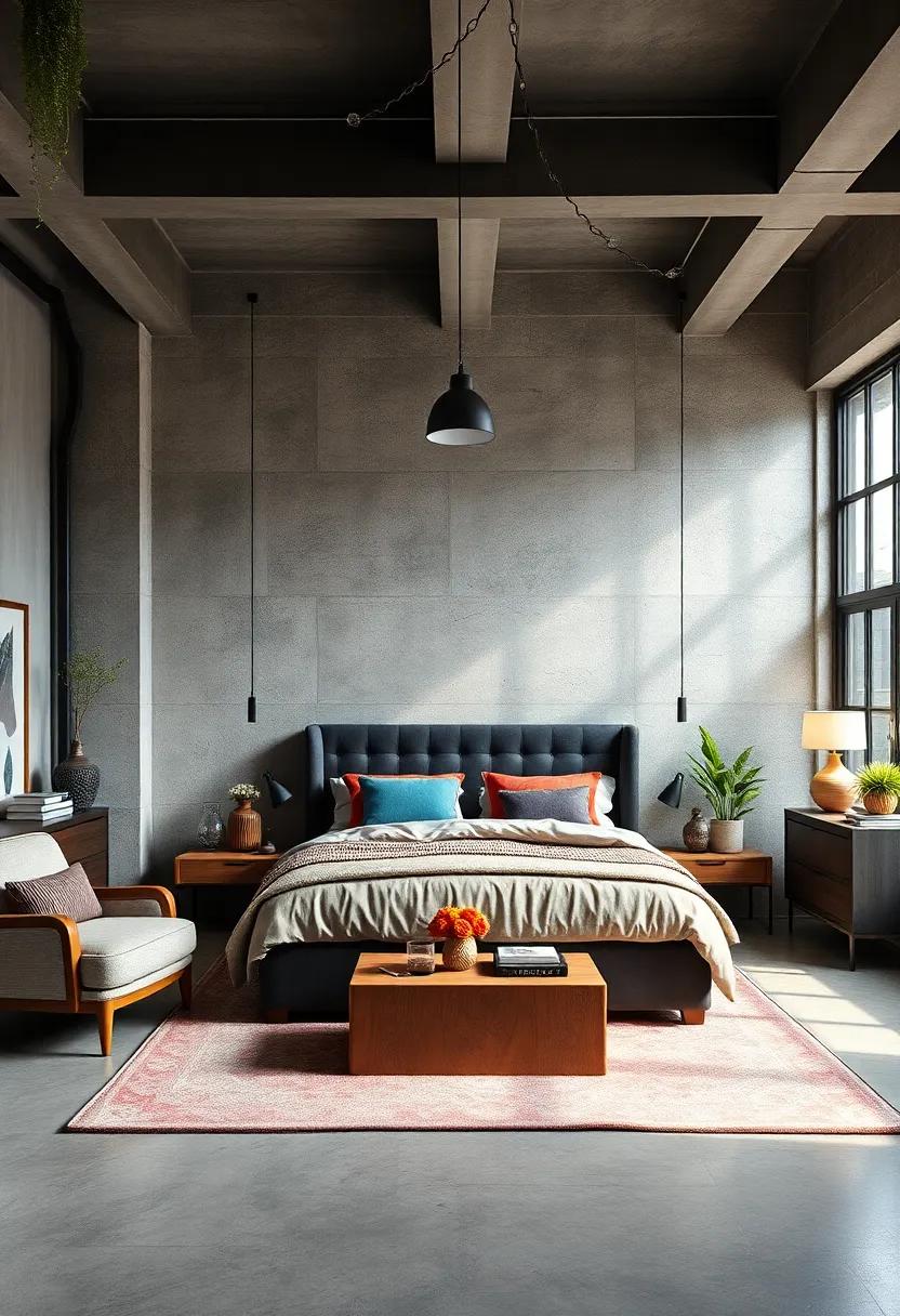 When selecting additional furnishings, consider items like a vintage dresser with mirrored detailing that reflects both the past and present. The juxtaposition of soft fabrics, like a plush upholstered chair, against hard metal frameworks can create visual balance within the room. Incorporating textiles such as rugged linen curtains and patterned throws can soften the industrial edge while remaining in harmony with the overall theme. To truly encapsulate this decor style, think about adding a touch of greenery with industrial-style planters or wall-mounted shelves for plants, merging nature with the robust characteristics of vintage industrial design.