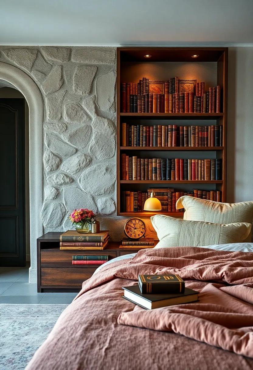 Antique Book Displays: Showcase a selection of leather-bound books on a bedside table or in an open bookshelf to surround yourself with history