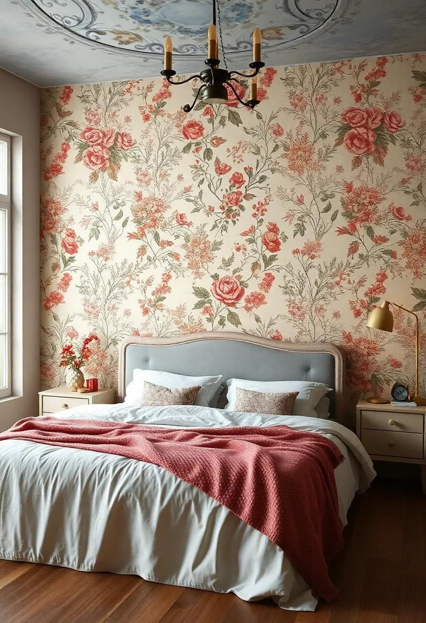 Classic Floral Wallpaper: Choose a vintage floral pattern for an accent wall, evoking a timeless romantic feel reminiscent of a country cottage