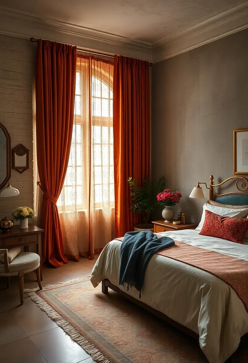 Elevate your vintage bedroom with the enchanting allure of heavy velvet curtains or delicate lace sheers. These window treatments not only nod to classic interior design but also add a rich layer of elegance and charm that transforms any space into a serene retreat. Opt for deep jewel tones like emerald green or royal blue in velvet to create a dramatic focal point, while soft, airy lace offers a more romantic touch, filtering light beautifully and maintaining a sense of openness.The contrast between the lush, sumptuous fabric and the ethereal nature of lace can evoke a timeless, sophisticated atmosphere that speaks to both comfort and style.