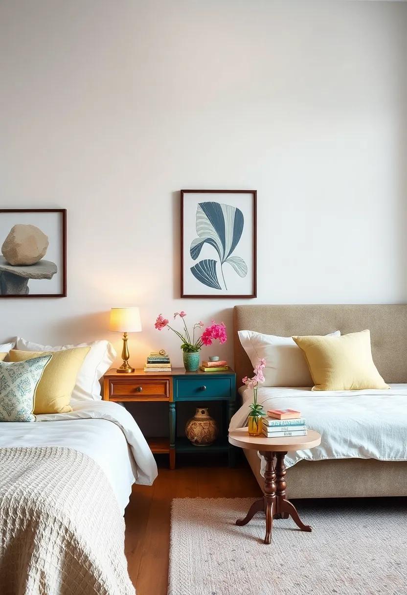 Old-Fashioned Bedside Tables: Look for unique side tables with old-world charm, perhaps from a flea market, to create a more personalized touch