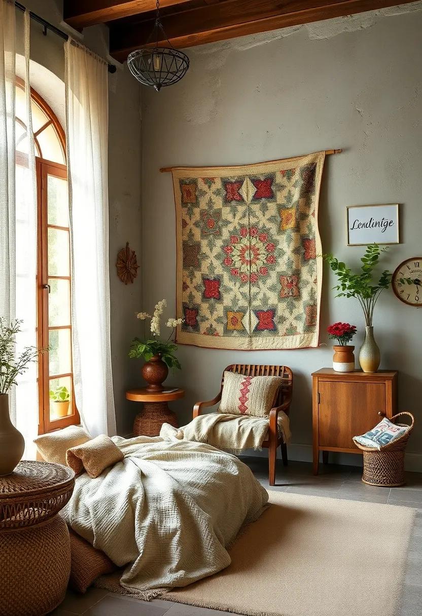 - Patchwork Charm: Display a patchwork quilt as a statement against a neutral wall.