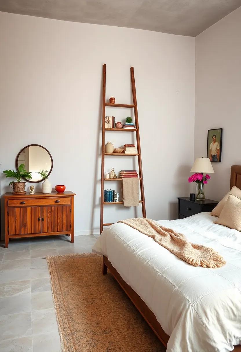 Repurposed Furniture: Take an old ladder and turn it into a unique bookshelf or towel rack for a functional and charming vintage touch