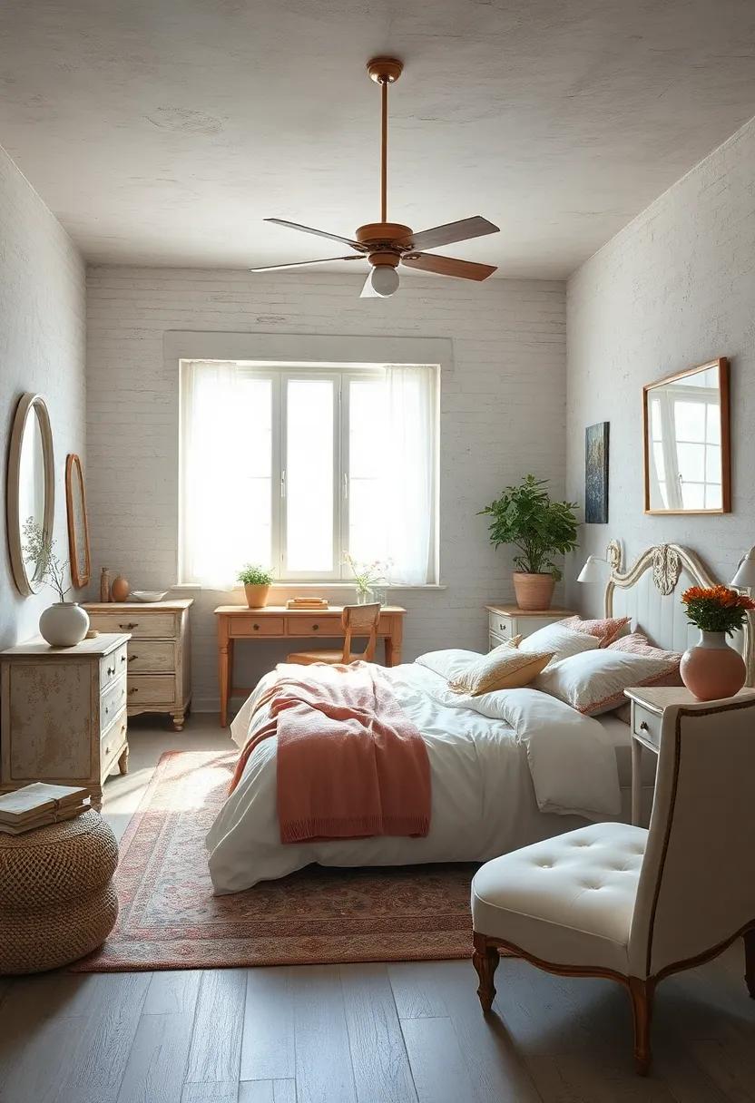 Embrace the charm of imperfections by incorporating furniture that showcases a visually worn finish. Look for pieces like distressed side tables or vintage chairs that offer character and tell a story through their chipped paint. These items are not just functional; they serve as beautiful focal points in your bedroom. Imagine a weathered nightstand with peeling blue paint, perfectly contrasting with soft, pastel bedding, evoking a sense of nostalgia and warmth. Such pieces can effortlessly transform your space into a cozy retreat, inviting you to unwind and reflect.
