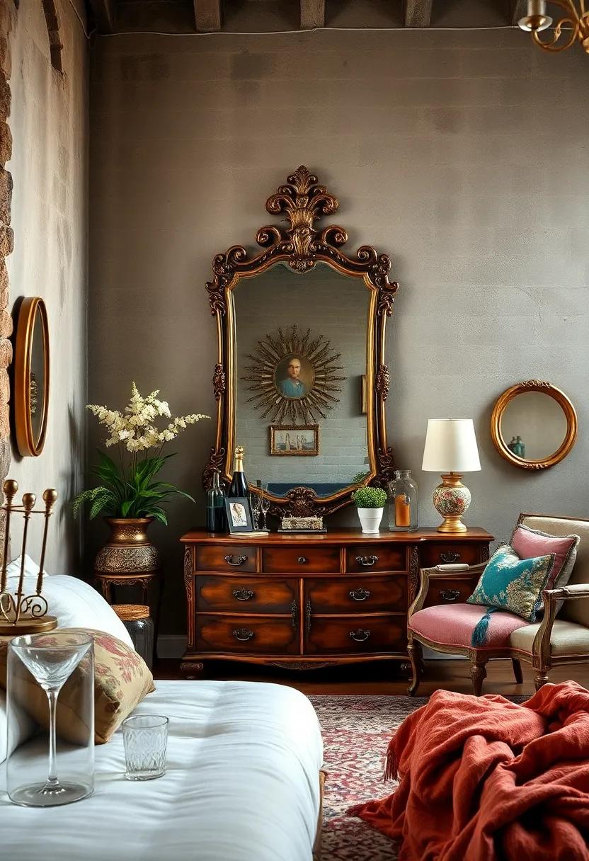 Vintage Mirrors: A large ornate mirror can enhance the light in your room,while smaller,quirky mirrors can add a playful touch