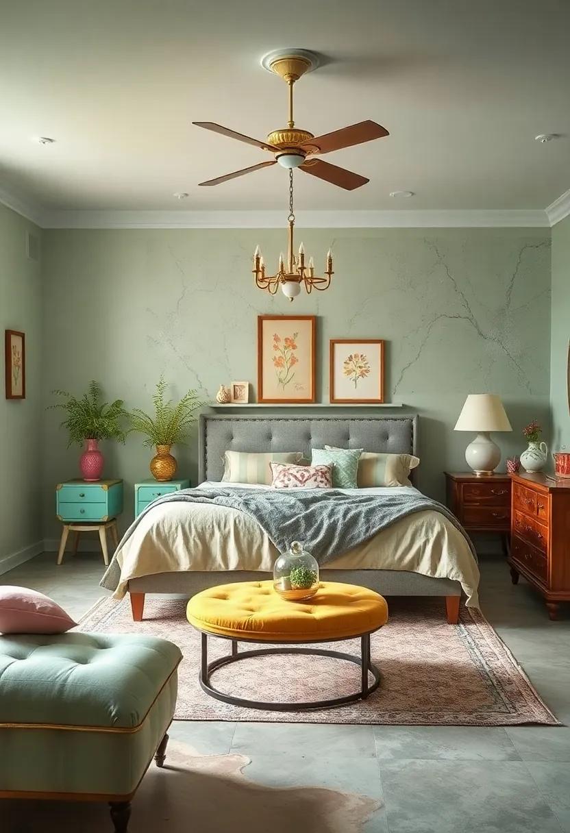 Retro Lighting Fixtures: Hang a mid-century modern chandelier or a vintage brass lamp to infuse your bedroom with warm, nostalgic lighting
