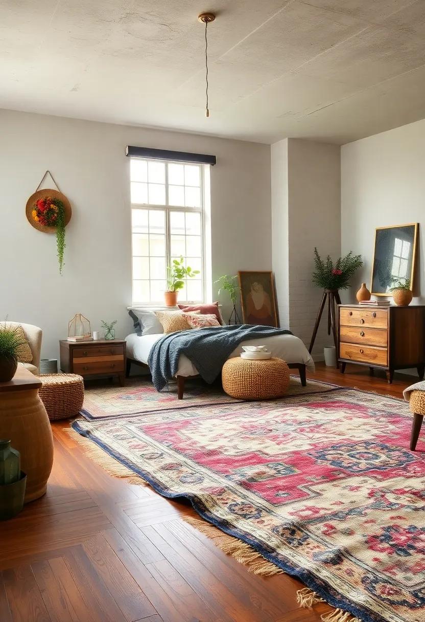 Transform your bedroom into a sanctuary of warmth and character by layering vintage rugs over rich hardwood floors. The juxtaposition of worn-in rugs with the sleek finish of hardwood introduces a beautiful dialog of texture and style. Choose from an array of patterns and colors that resonate with your personal aesthetic, whether it’s deep reds and earthy tones or muted pastels. Consider the placement of your rugs wisely; a larger vintage piece can anchor the room, while smaller accent rugs piled in cozy corners invite a sense of intimacy and charm.