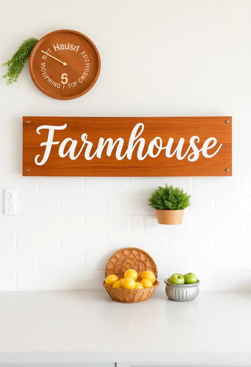 farmhouse Signage: Embrace personalized farmhouse signage, displaying your family name or kitchen motto, crafted from natural wood or metal for an authentic touch