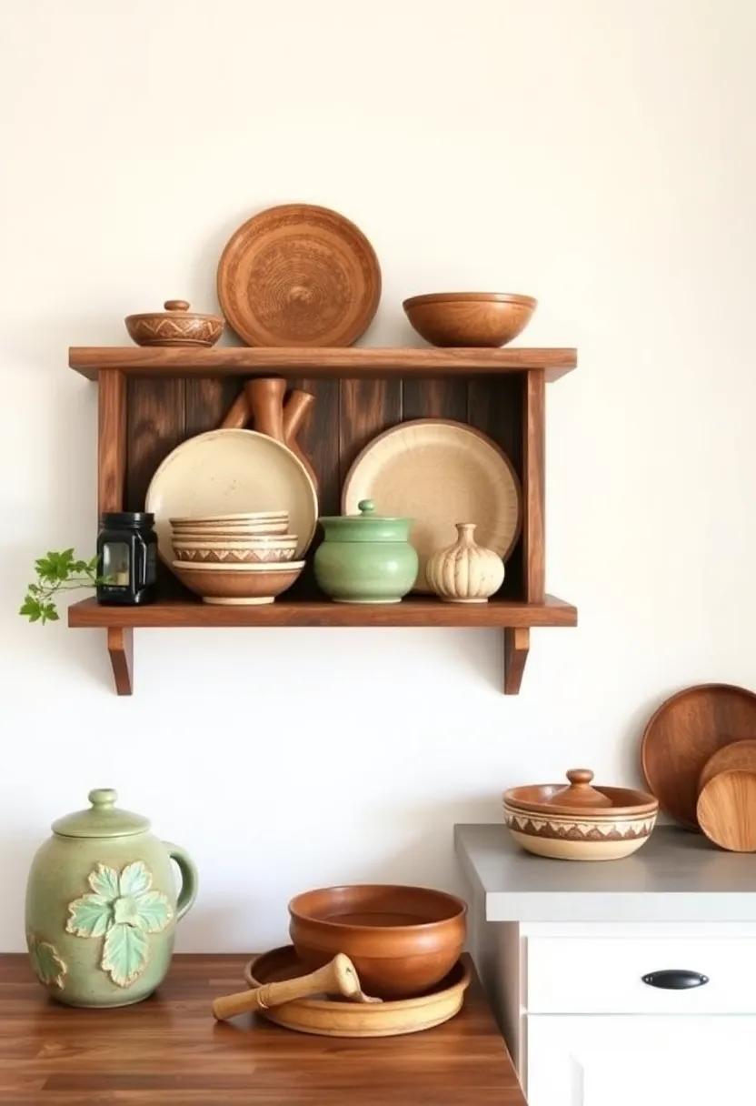 Handmade Pottery: Adorn your walls with handmade pottery pieces, such as bowls or vases, to add texture and a unique artisan flair to your kitchen
