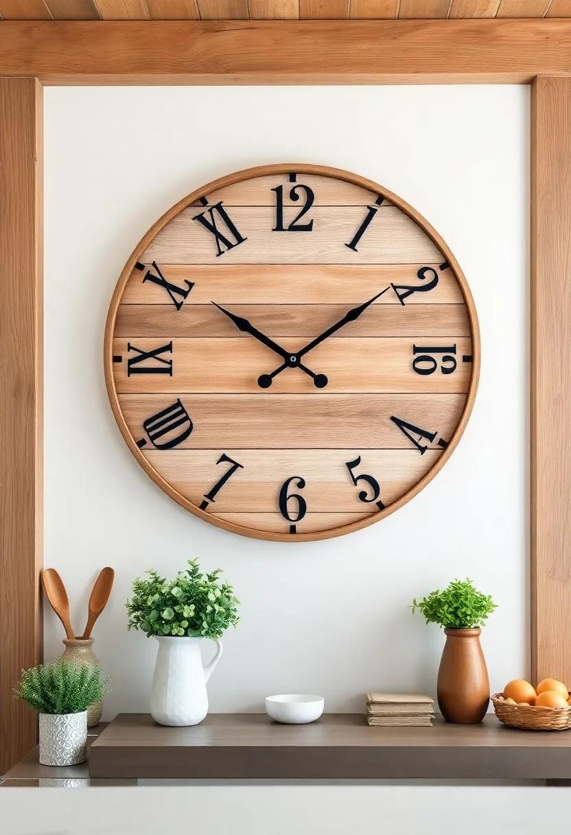 Farmhouse Clock: A large, oversized wall clock made of reclaimed wood adds a focal point and a functional element while enhancing the rustic feel