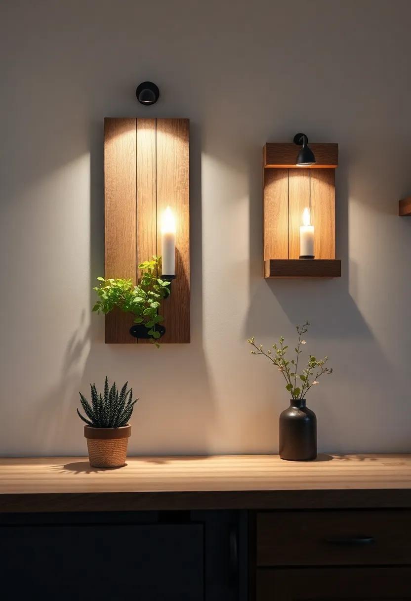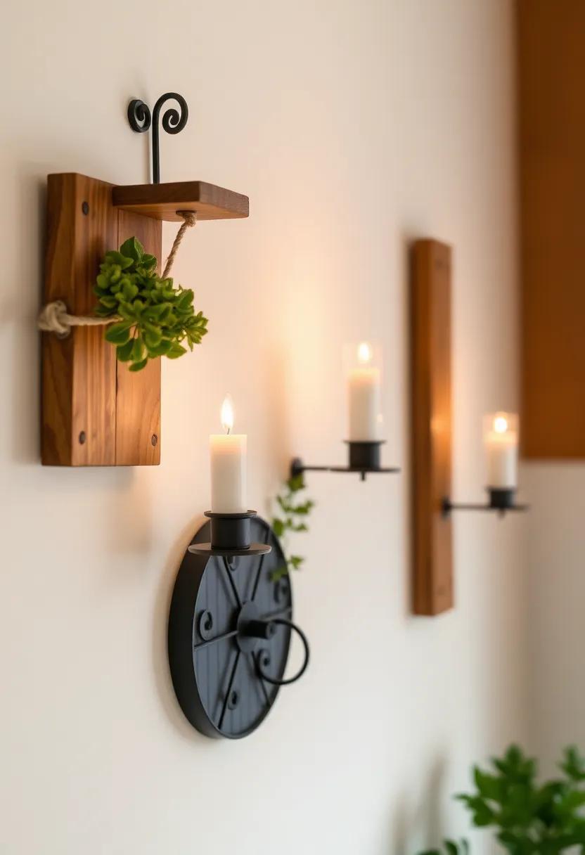Wooden Wall Sconces: Use handcrafted wooden sconces to display candles or plants, illuminating your kitchen with warmth and charm