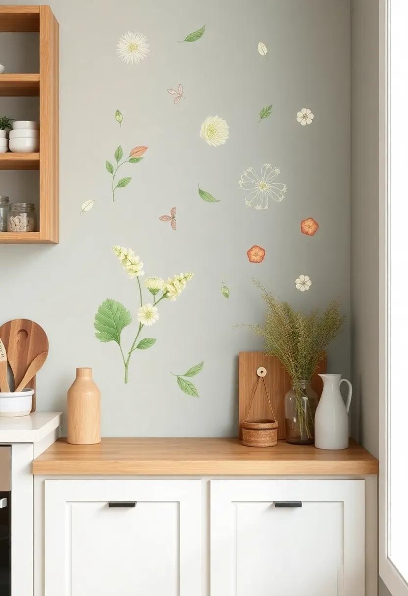 Above the Sink: Adorn the wall with cascading floral decals that add a touch of serenity while you wash dishes.