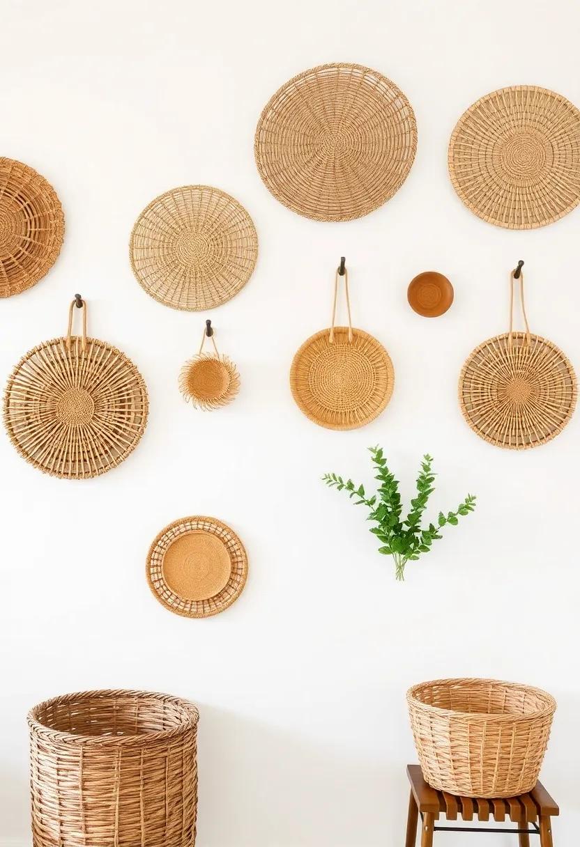 Woven Baskets: Decorate your walls with a mix of woven baskets for a natural, bohemian touch; they can serve as both art and storage