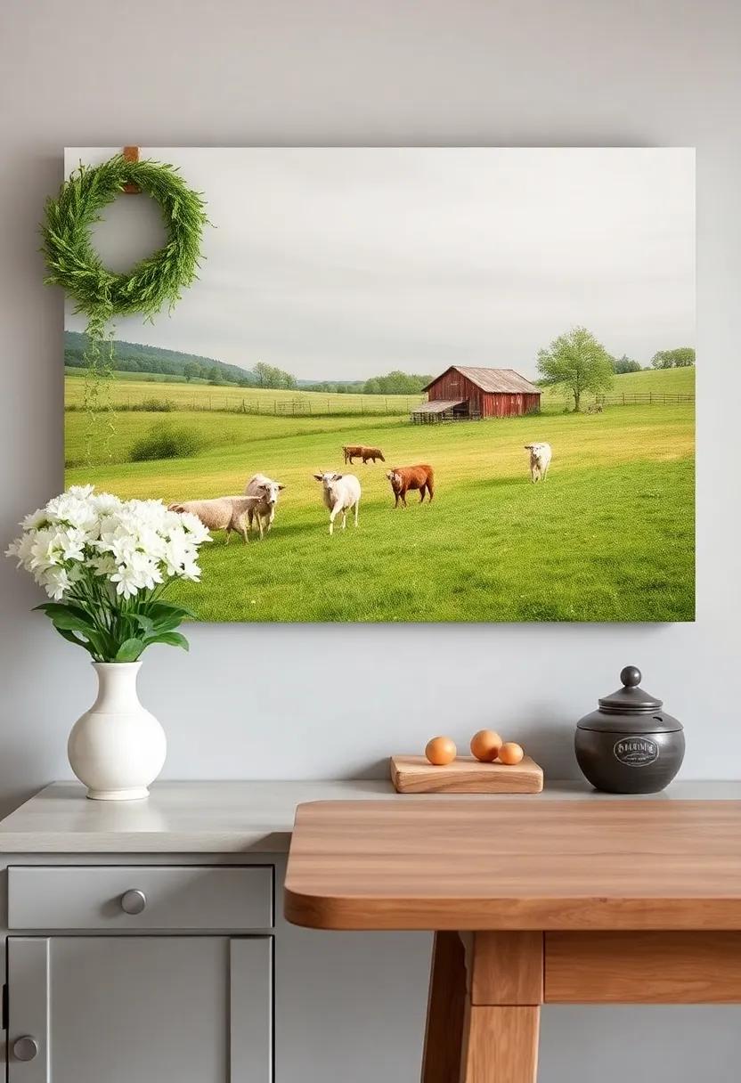 Transform your farmhouse kitchen into a tranquil haven by incorporating large canvas prints that celebrate pastoral life. These striking wall art pieces can encapsulate the essence of rolling fields,grazing animals,and idyllic farm scenes,turning your kitchen into a visual escape. When choosing your canvas, consider images that feature vibrant landscapes or charming farm activities, as they offer not only a focal point but also a sense of calm, inviting warmth into your space. Whether you select a rustic depiction of a red barn under a golden sunset or serene pastures dotted with sheep, these prints can infuse your kitchen with a joyful narrative.