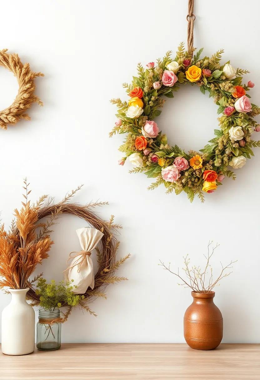 Seasonal Wreaths: Switch out wreaths according to the seasons—floral in spring, dried foliage in autumn—to keep your kitchen decor fresh and inviting