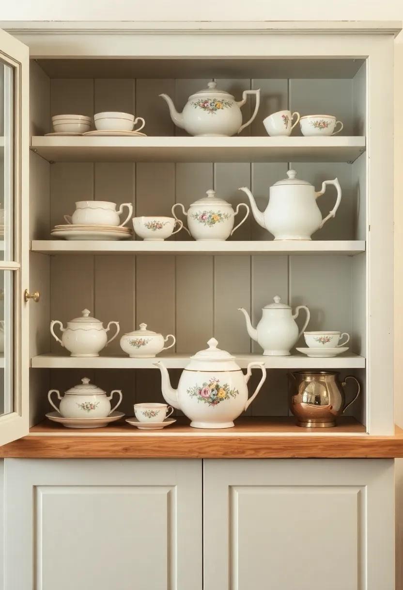 Antique Teacup Display: Create a charming display of antique teacups on shelves or within a glass cabinet to celebrate vintage collectibles