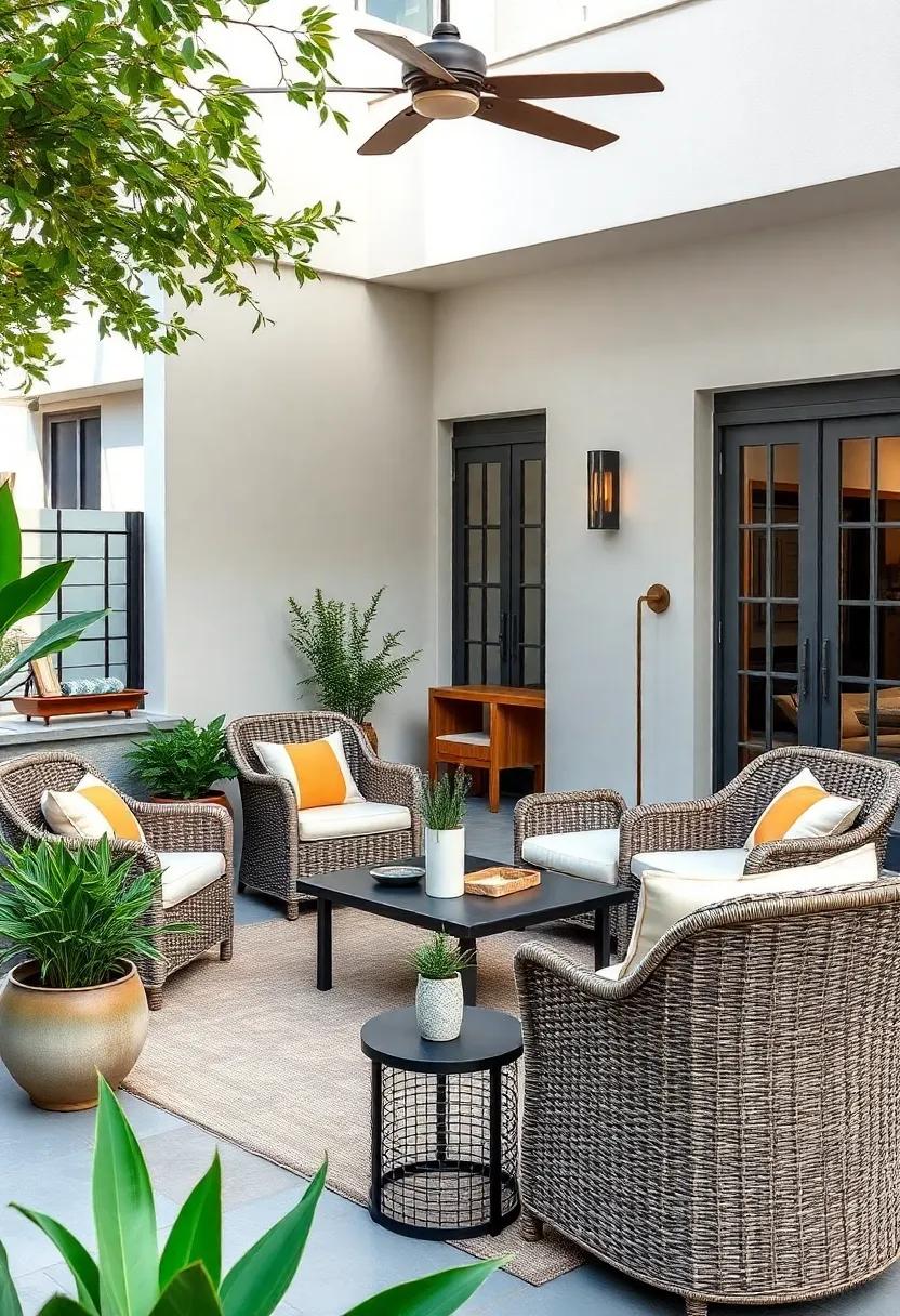 To create a stunning outdoor oasis, prioritize clean lines with contemporary wicker furniture that not only enhances aesthetic appeal but also promotes comfort. Choose sleek, minimalistic wicker sofas and chairs with built-in cushions in neutral shades to maintain a sophisticated look. Incorporate a low-profile coffee table with sharp, geometric designs to accentuate the modernity of your patio space: