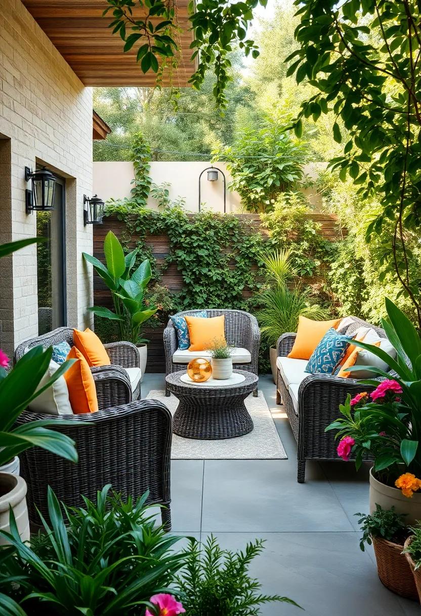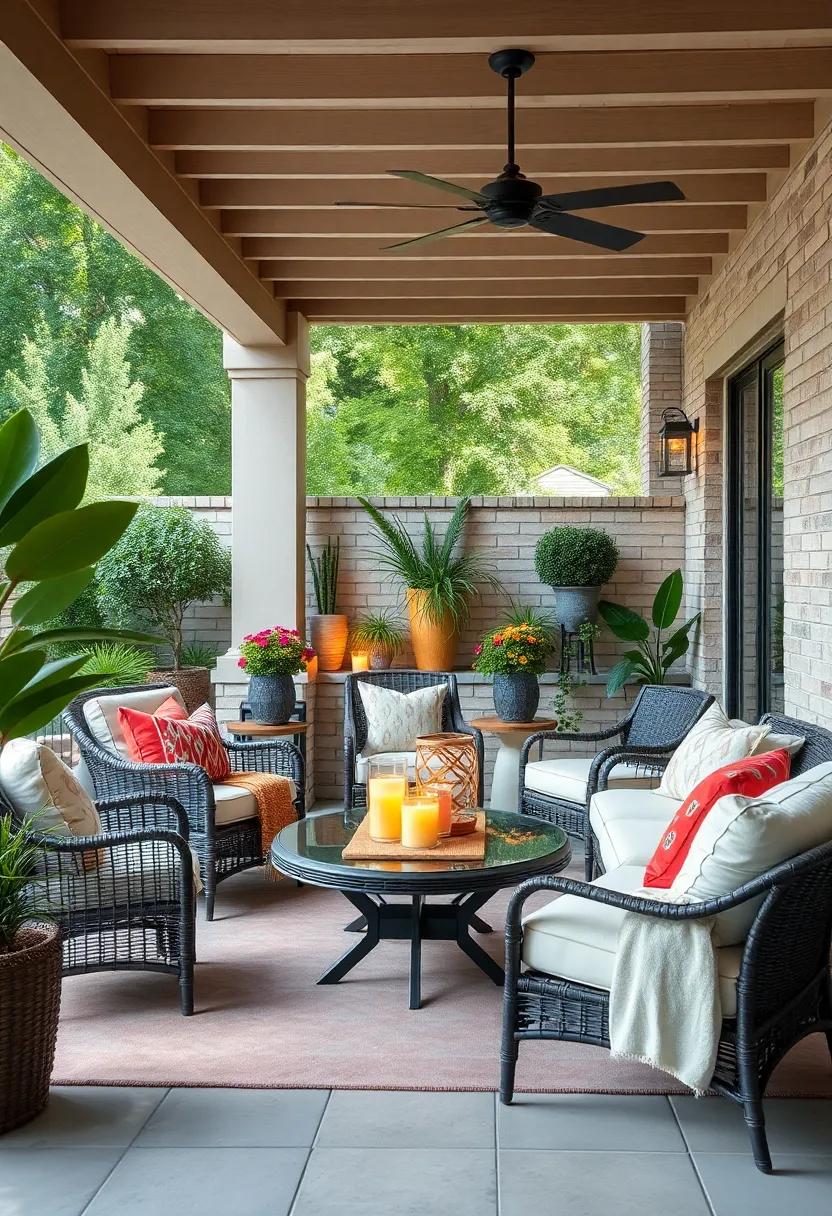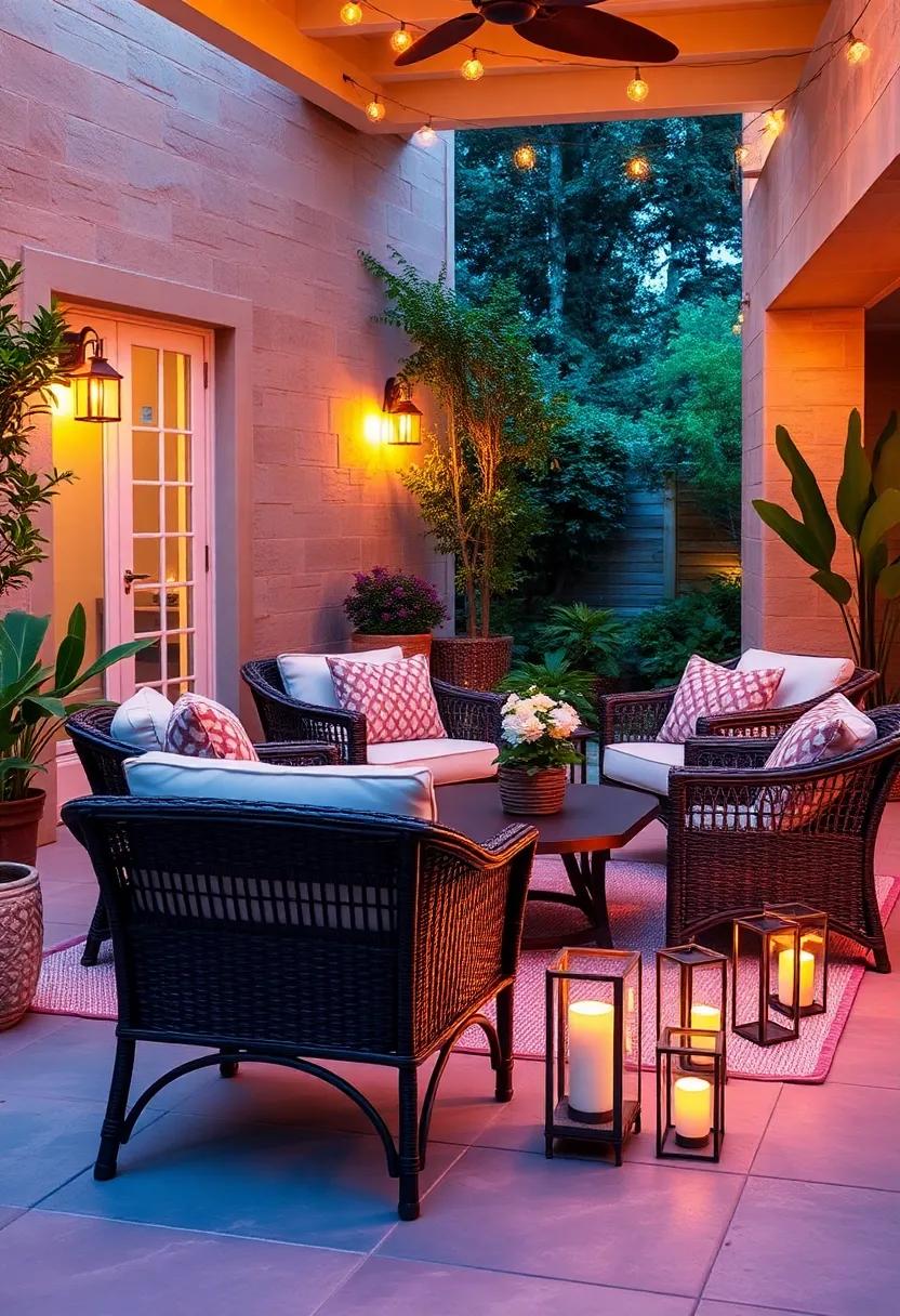 To complete the look, opt for a cohesive color theme that resonates throughout your patio. A well-curated arrangement of cushions can transform a simple wicker chair into a focal point, making your outdoor space feel curated and stylish. Layer your cushions by mixing textures—think soft cottons together with durable outdoor fabrics. This not only adds comfort but also creates visual interest. incorporate low tables with a summery touch and a few lush plants to bring life to the area. This combination of lighting, color, and natural elements allows for memorable evenings under the stars with family and friends.