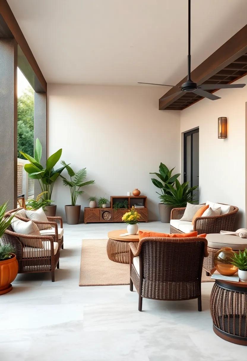 Multi-Functional Space: Use modular wicker furniture that allows for flexibility, perfect for hosting gatherings or creating a quiet reading corner