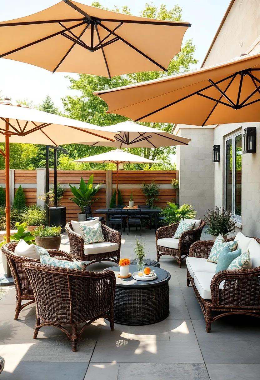 incorporating outdoor umbrellas or canopies can not only provide a respite from the sun but also elevate the overall look of your wicker lounge. Opt for bold colors or ornate patterns to create a stunning contrast against the natural tones of wicker, or choose more neutral palettes to achieve an understated elegance. consider selecting umbrellas with adjustable heights and tilting mechanisms for maximum versatility, allowing you to modify the shade as the sun moves. This functional style makes it easy to blend comfort and chic aesthetics while adding a cozy, inviting atmosphere to your outdoor space.