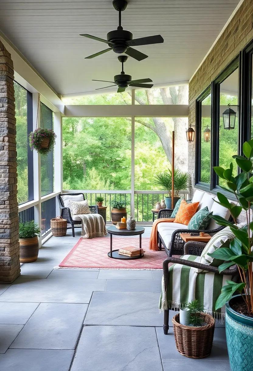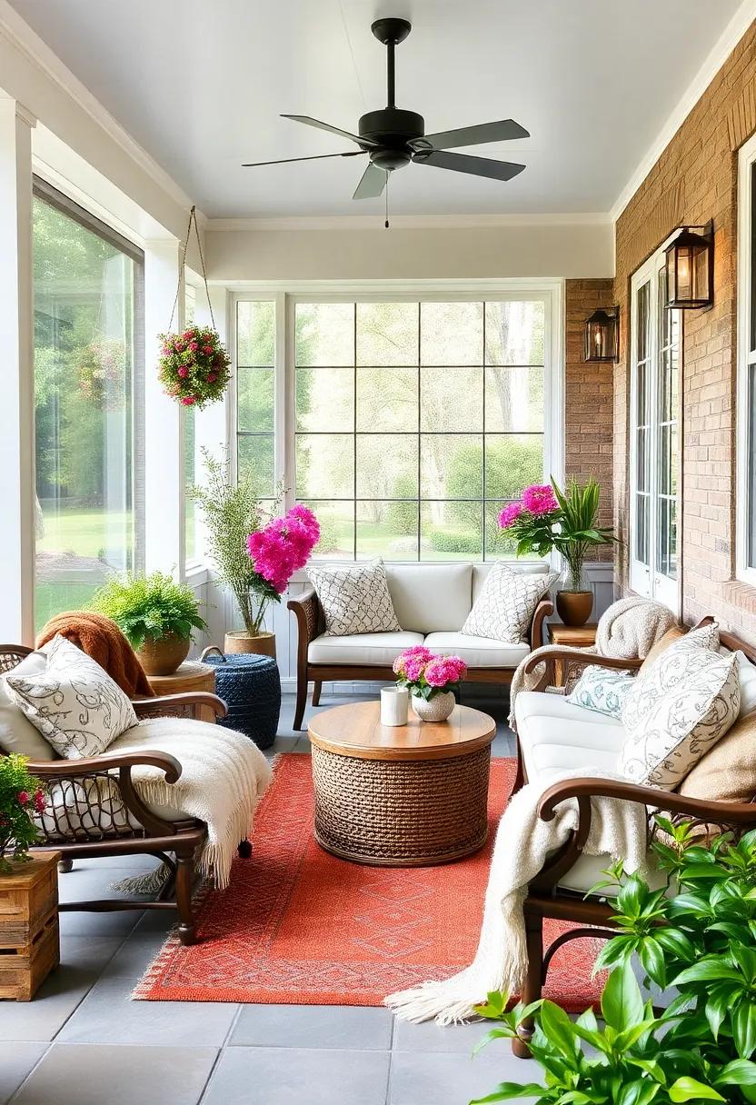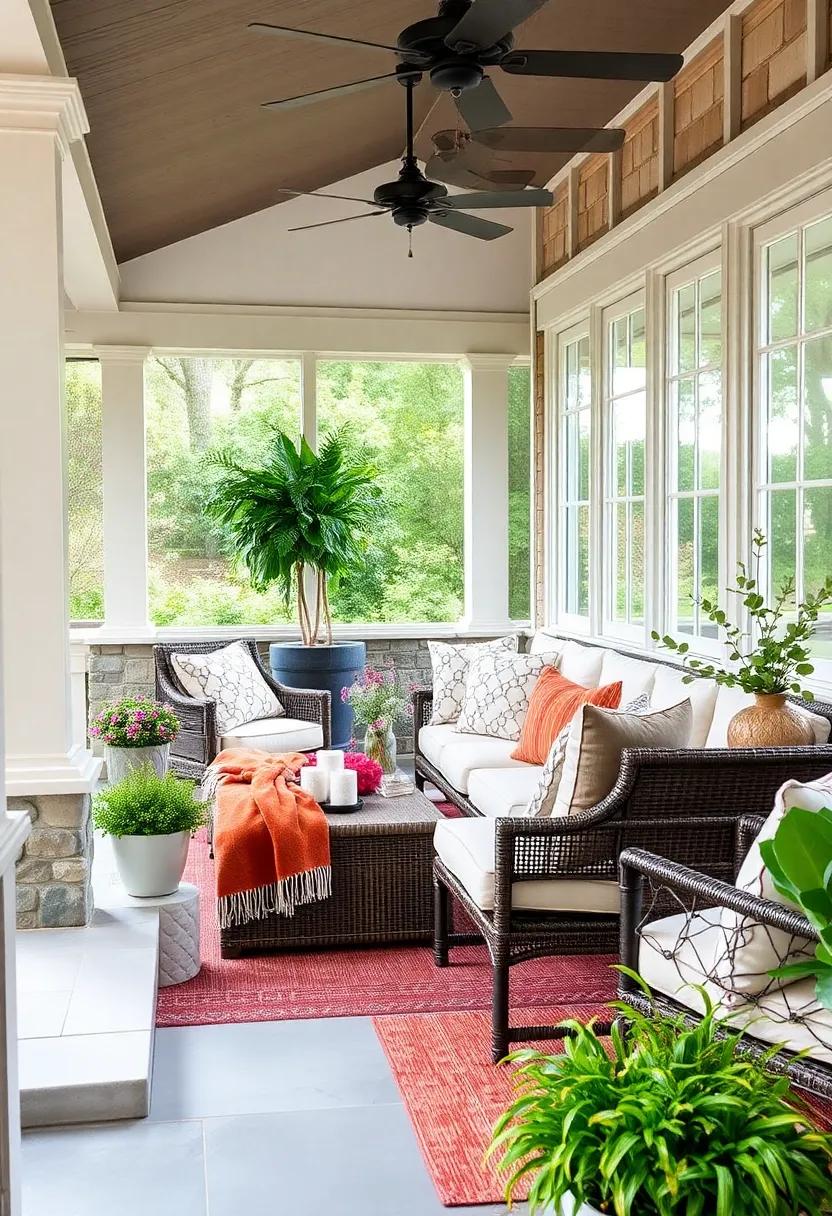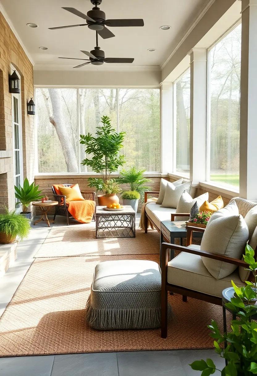 Transforming your screened porch into a warm and inviting space starts with the right seating arrangement. an oversized sectional can be the centerpiece of your outdoor oasis, with its generous proportions allowing for both lounging and socializing. Opt for soft, weather-resistant fabrics that offer comfort and style, creating a cocoon-like vibe perfect for both casual family gatherings and cozy evenings with friends. Alternatively, consider cushioned benches positioned around a rustic coffee table. This setup not only provides ample seating but also encourages relaxed conversations while maximizing the porch’s available space. With a manageable selection of bold cushions and throws, you can easily inject color and personality, making your porch a delightful retreat.