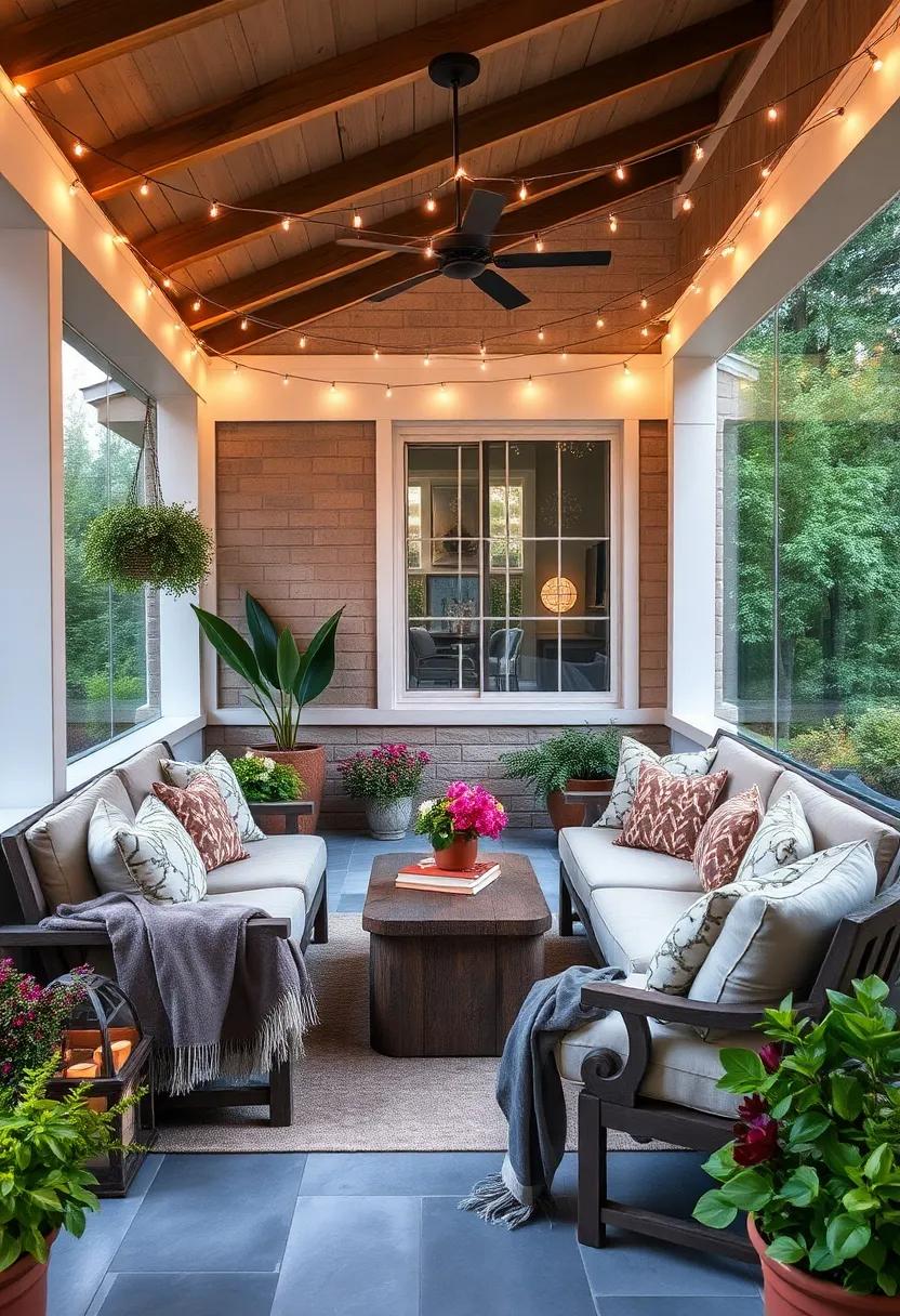 Embrace Layered Lighting: Combine task lighting for reading with soft ambient lighting to create adaptable spaces for different activities on your porch