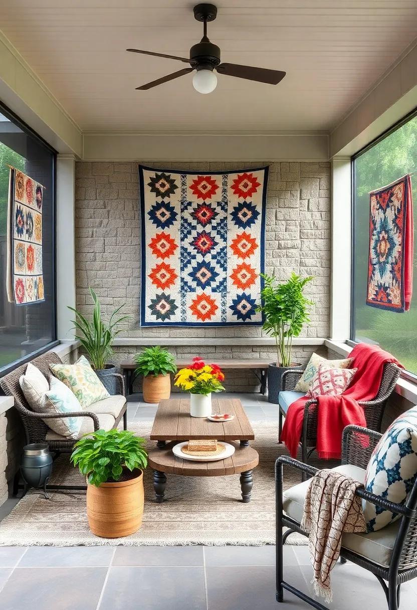 Transform your screened porch into a cozy retreat by displaying your quilts as wall art. Not only do these fabric treasures serve a decorative purpose, but they also infuse the space with a sense of warmth and nostalgia. Choose a selection that complements your color scheme or showcases a seasonal theme to effortlessly change up your decor throughout the year. Hang them using decorative clips or quilt hangers,allowing their beautiful patterns and textures to become a focal point on your walls. Consider a gallery-style setup that showcases multiple quilts, creating an inviting tapestry of colors that draws the eye.
