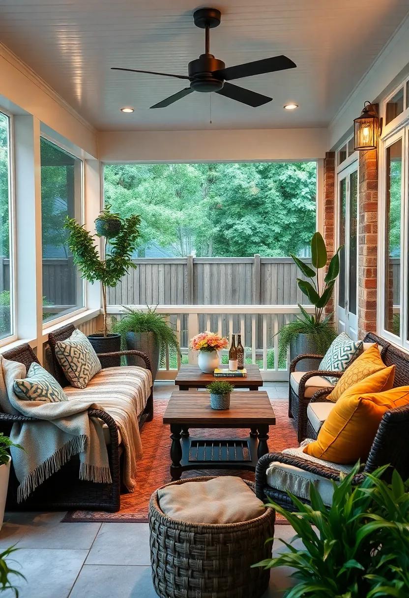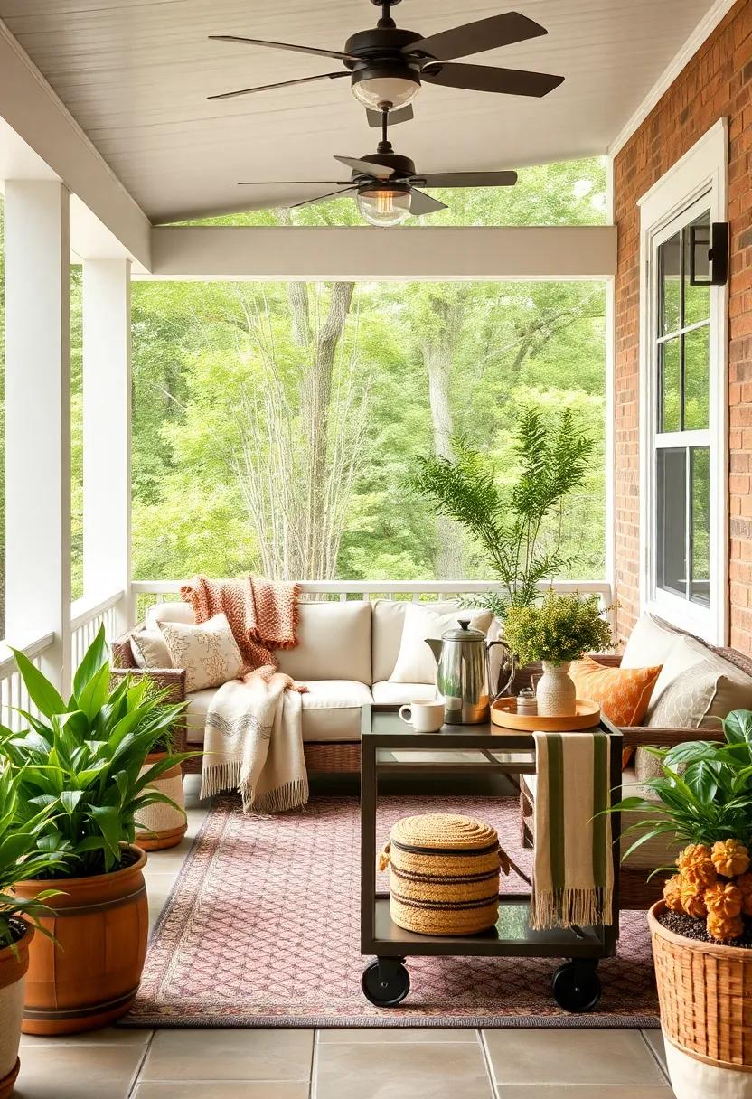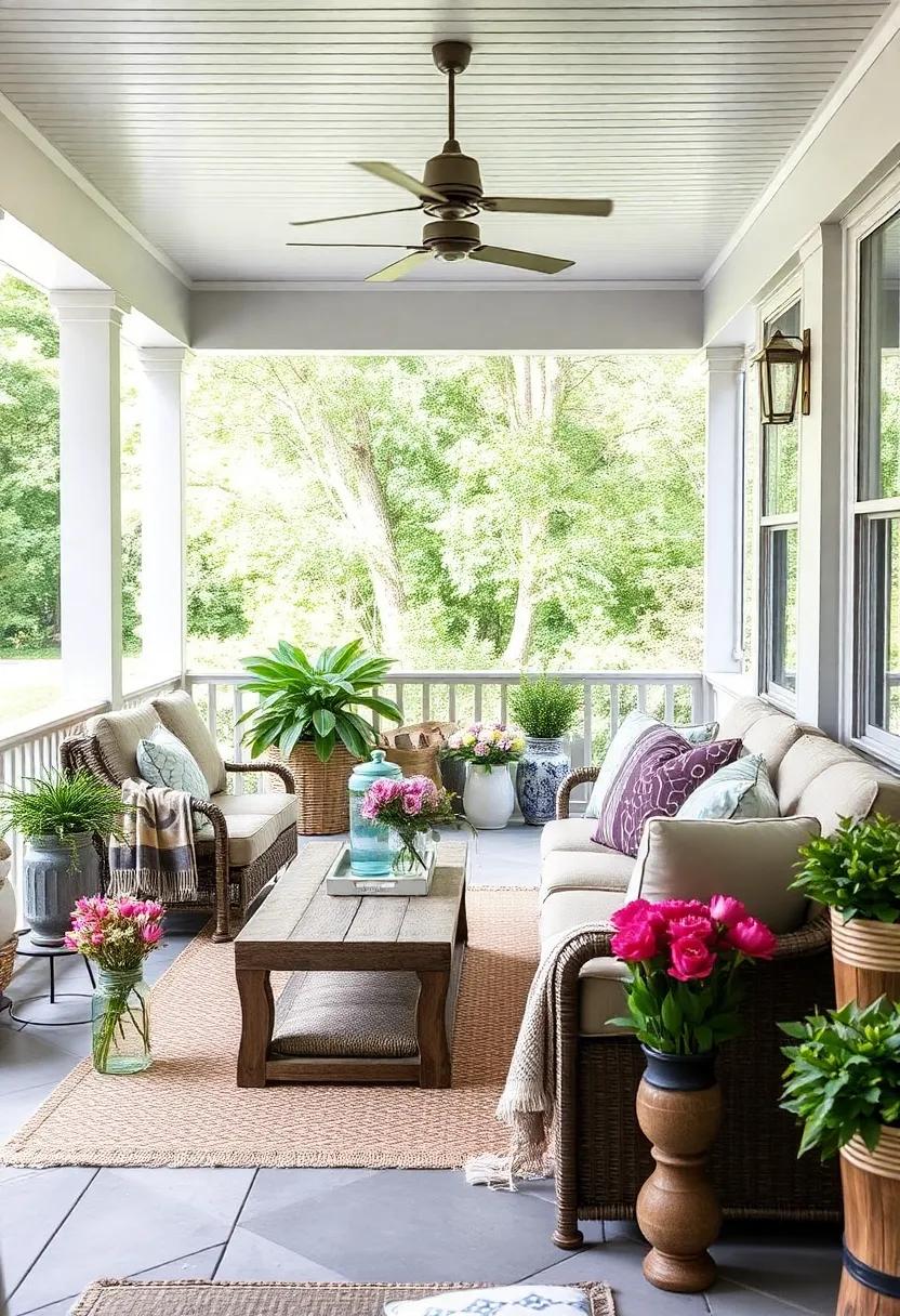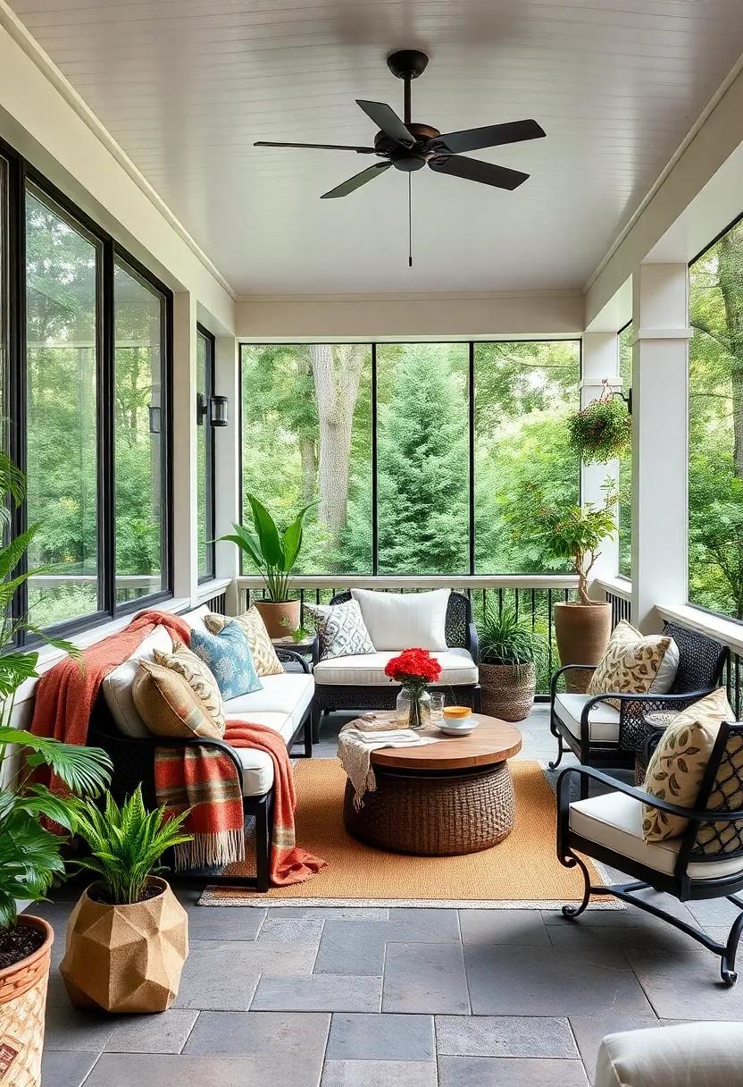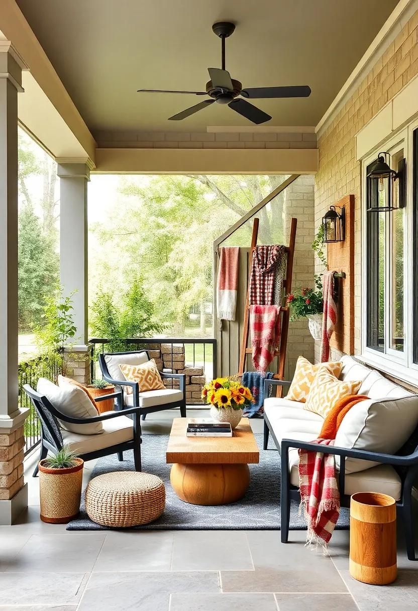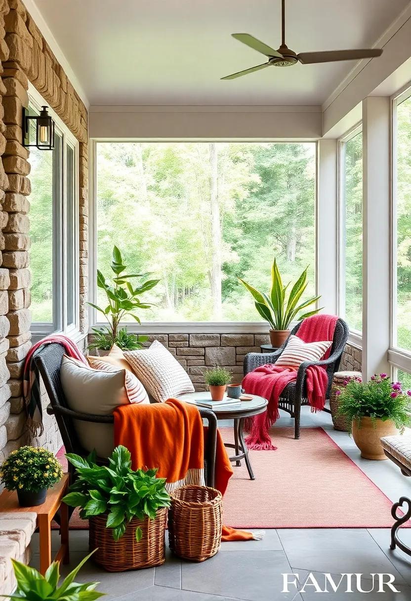 Layering different textures can further enhance the cozy effect of your seasonal blankets. Combine chunky knit throws with smooth fleece for a dynamic look that invites touch and warmth. Incorporate patterned blankets that feature autumn leaves or snowy scenes to emphasize the season’s aesthetic. You can also create a small blanket display by folding several throws neatly in a woven basket or draping them over a rustic ladder.This not only serves as decor but also provides easy access when the temperatures dip in the evenings. With a little thoughtful layering and the right colors, your screened porch can effortlessly transition from a cozy fall nook to a bright spring escape.