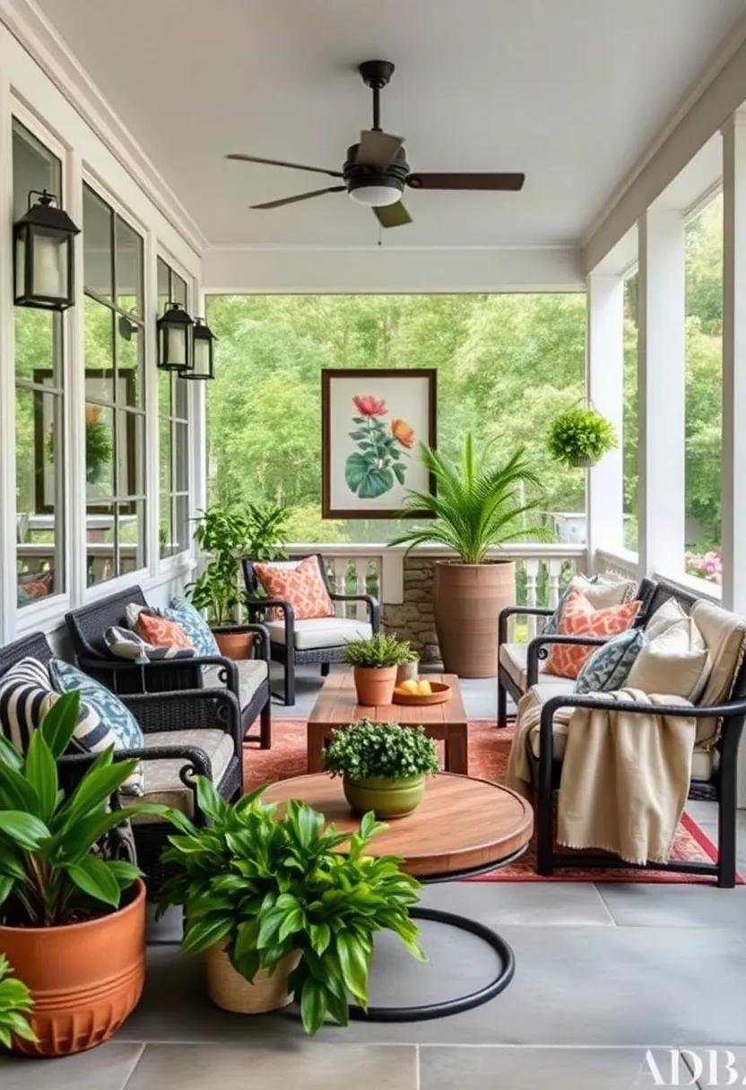 Incorporating potted plants into your screened porch creates an organic haven that brings tranquility and a touch of the outdoors indoors. Consider a variety of plant types to not only enhance the aesthetic but also elevate the air quality and overall atmosphere. Some delightful options include: