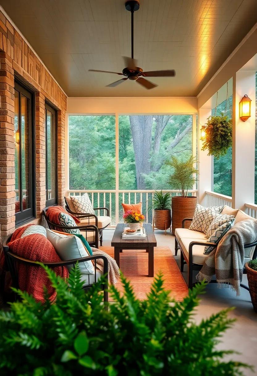 to transform your screened porch into a tranquil retreat, consider incorporating a mix of soft lighting fixtures that evoke warmth and charm.Lanterns provide a rustic touch, emanating a flickering glow that creates intimacy. Whether you choose to line them along the railing or hang them from the ceiling, their inviting ambiance will draw you in. Pendant lights, with their sleek designs and versatile styles, can serve as focal points that offer just the right amount of illumination for evening gatherings. Consider variations in height to add depth and visual interest, creating a layered lighting effect that beautifies the space.