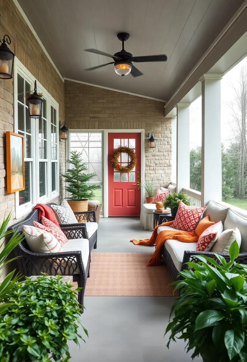 To enhance the appeal of your seating area, implement a few key design elements. Add plush outdoor pillows in rich textures to maximize comfort and encourage lounging. Layer your seating with decorative throws, inviting guests to snuggle up on cooler evenings. Opt for neutral designs that complement your porch’s color scheme while choosing a few vibrant pieces to serve as eye-catching accents. Setting up a simple coffee table in the center will provide a functional space for drinks or snacks,merging practicality with style. Don’t forget to incorporate lighting elements, such as string lights or soft lanterns, to create an alluring ambiance as the sun sets.