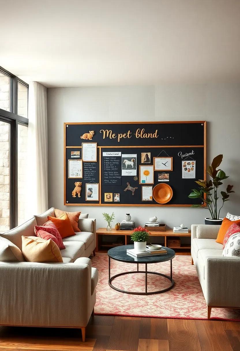transform your bulletin board into a vibrant, interactive hub for your pets! Use a chalkboard to jot down your furry friends’ schedules, including their feeding times, playdates, and grooming sessions. Decorate the board with colorful stickers or pet-themed magnets for a personal touch. To make it even more engaging, designate separate sections for each pet, ensuring you can easily spot their next grooming appointment or upcoming vet visit. This not only keeps you organized but also adds a playful flair to your living space.