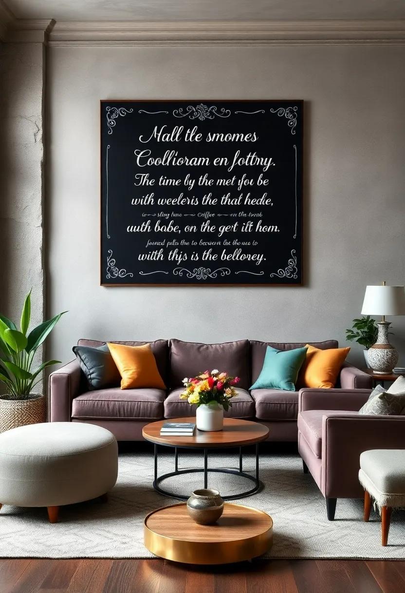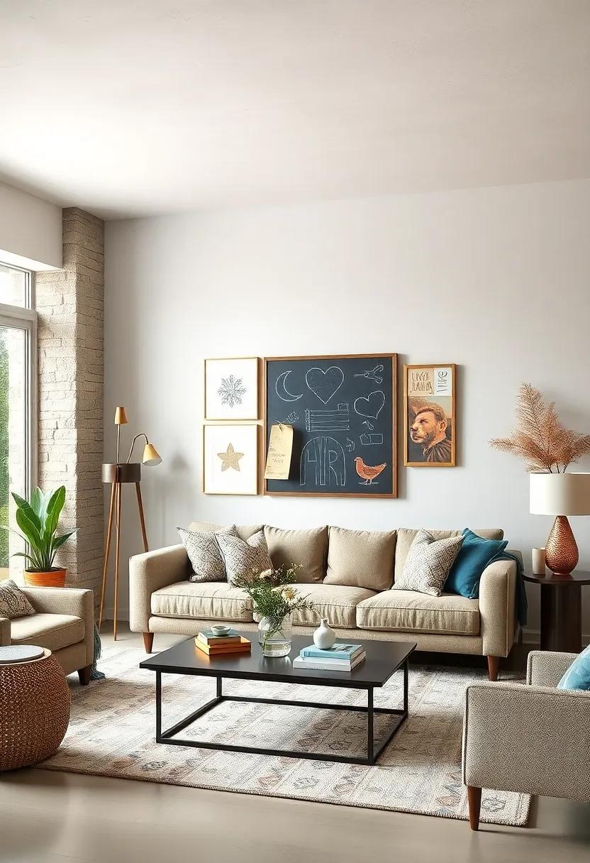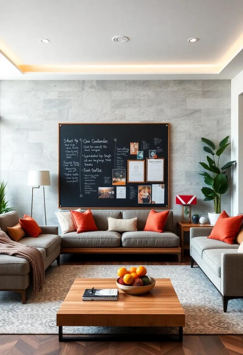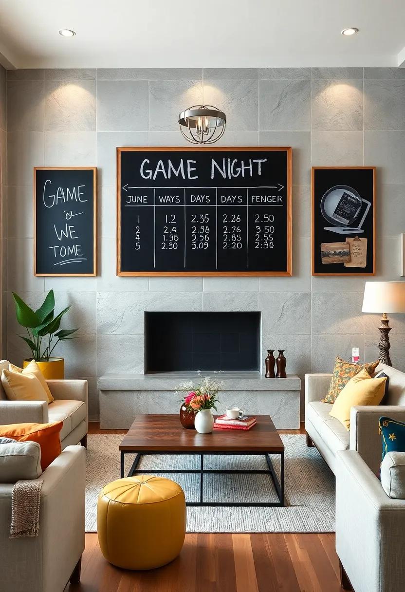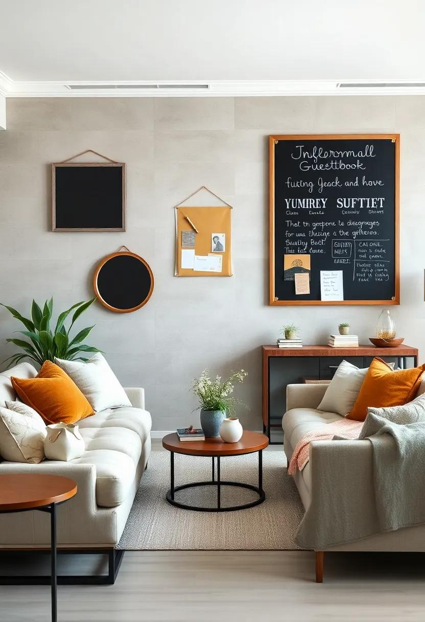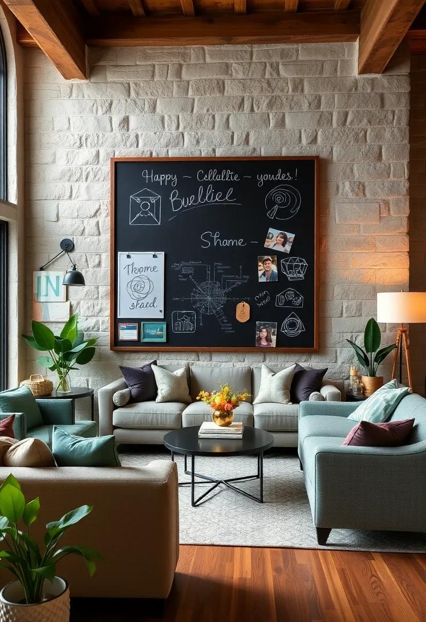 transform your living room into a haven of memories with a whimsical chalkboard where guests can unleash their creativity. Set up the board in a prominent spot, perhaps near the snack table or an inviting seating area. Provide an array of colorful chalks to inspire your visitors, allowing them to leave quirky messages, heartfelt notes, or even doodles.This interactive element not only sparks laughter but also captures the essence of each gathering, making it a delightful focal point that evolves over time!