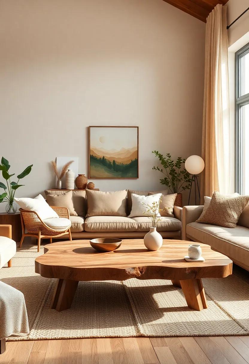 These carefully curated elements not only harmonize with the warm neutrals but also add character and richness to your space. By thoughtfully selecting each piece,your living room can become a peaceful haven where nature-inspired elegance reigns.
