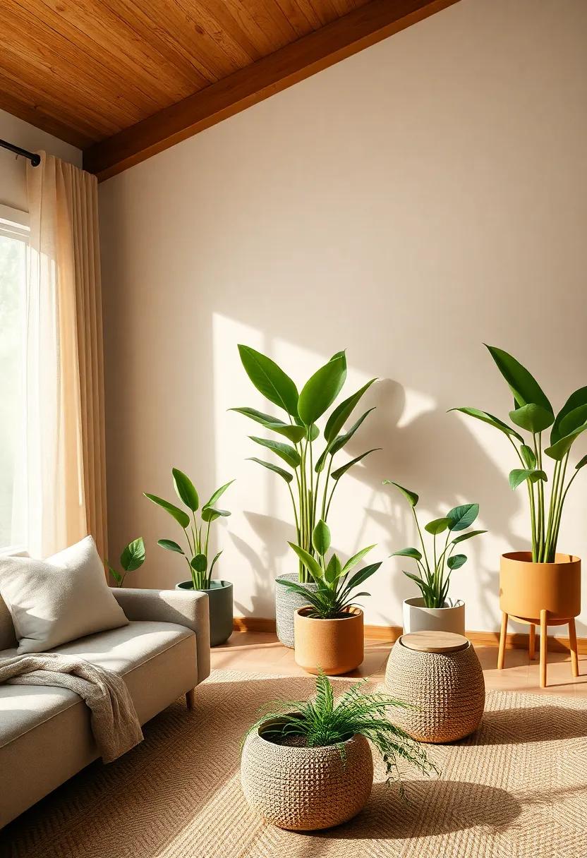 - Indoor Plants: introduce greenery to complement the earthy tones and breathe life into the space.