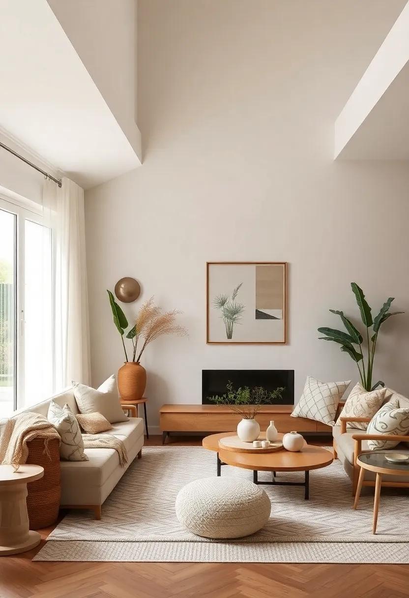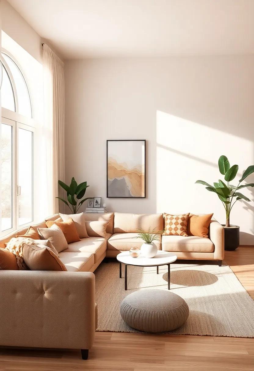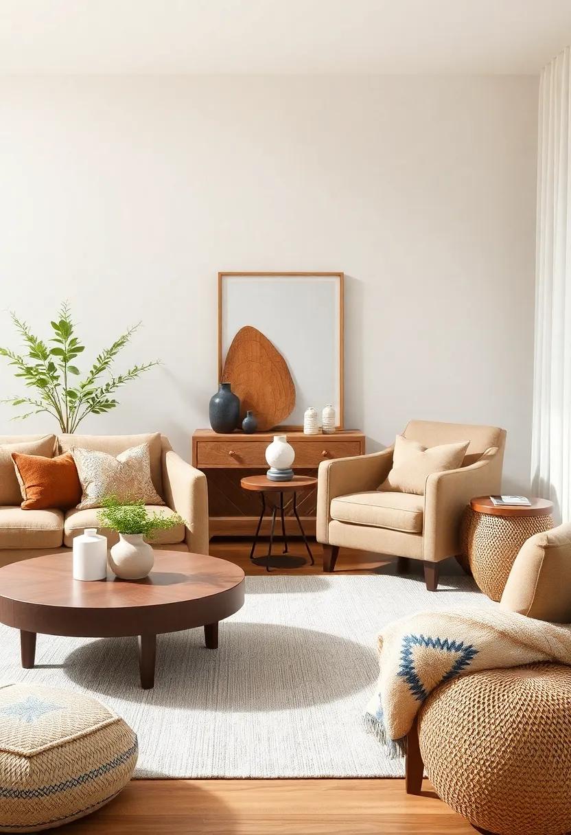 This carefully curated selection not only showcases how different elements can integrate seamlessly but also emphasizes simplicity and elegance within your living room design. By selecting accessories that resonate with your neutral palette, you can create a cozy, inviting space that feels like a natural extension of the outdoors.