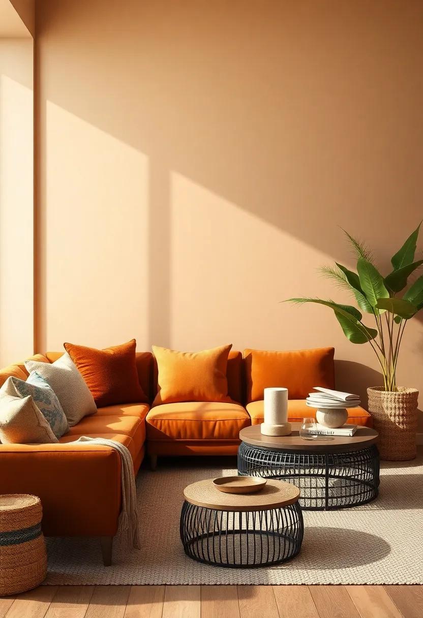 Accessorizing with terracotta can extend beyond just pottery. Explore terracotta vases, which can stand as statement pieces or hold your favorite dried flowers. For an extra layer of warmth, consider terracotta-framed mirrors that enhance the space while reflecting natural light. Adding a few handmade terracotta coasters can also introduce subtle detail, combining functionality with artistic charm. By mixing these elements, you can create a cohesive design that invites relaxation and mindfulness, capturing the essence of nature right in your living room.