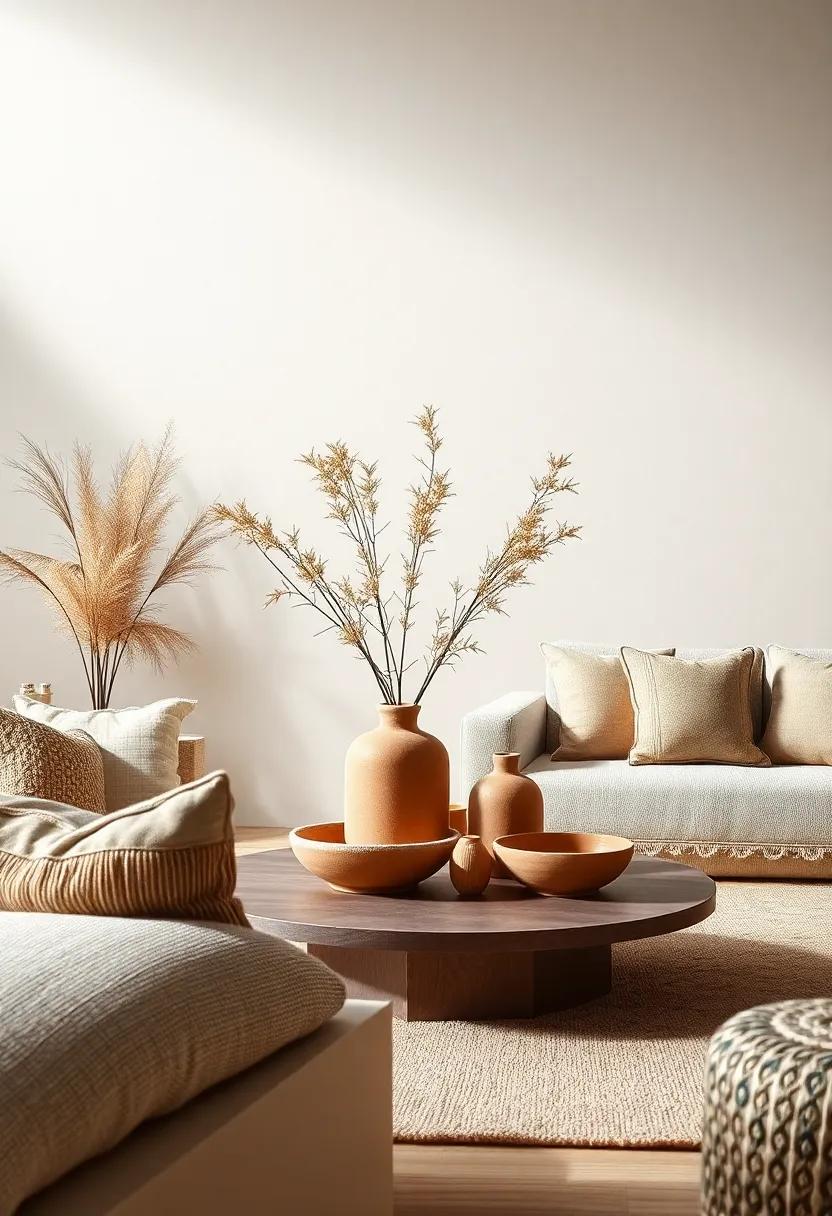 To enhance the calming vibe, integrate earthy accessories that complement your neutral theme. Consider using items such as: